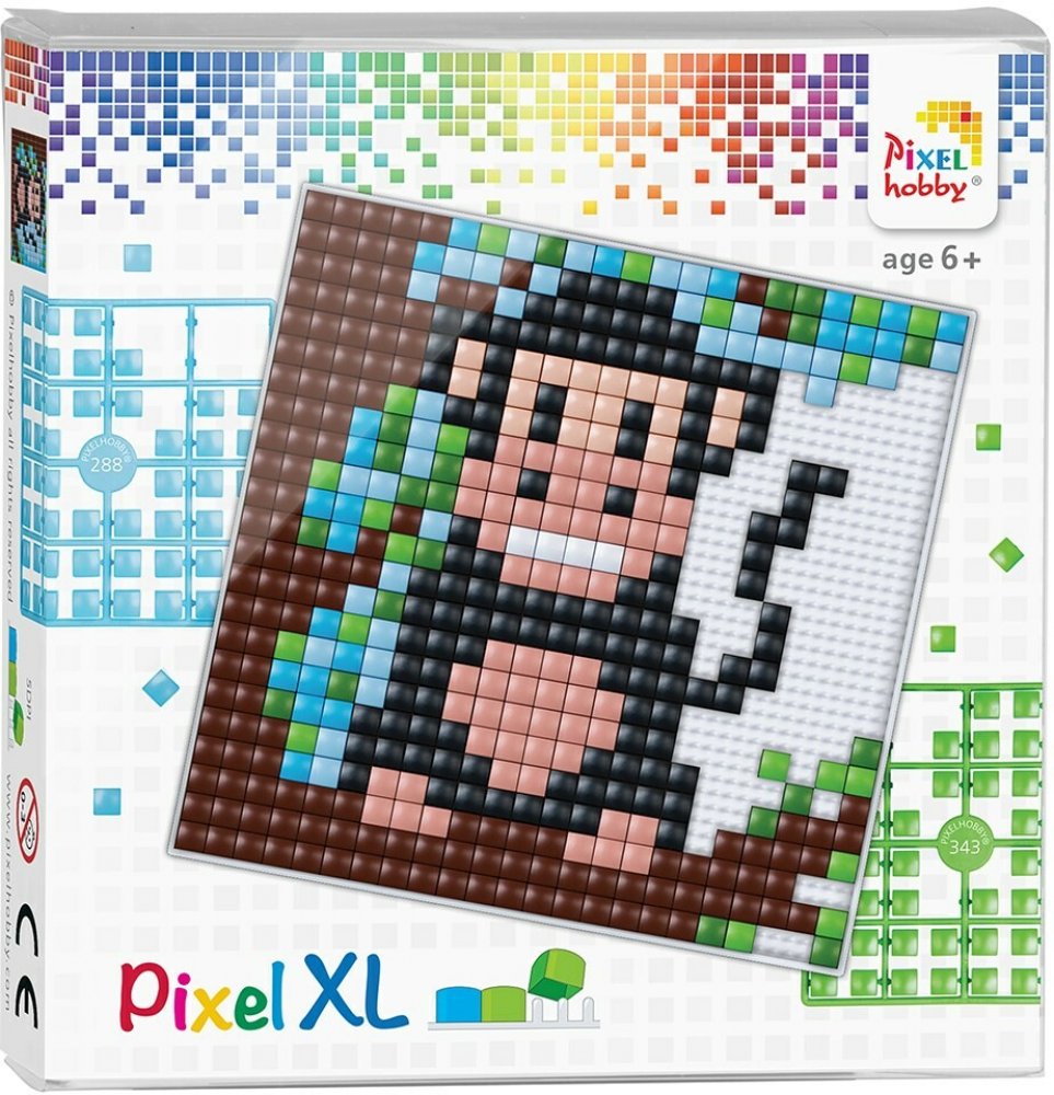 XL Pixel set je o něco náročnější pixelová sada pro děti (od 4 do cca 7 let). Tyto XL pixelové sety obrázky jsou čtyřikrát větší a obsahují více barev než Pixel set XL - základní . Pixely XL se nasazují na flexibilní čtvercovou základní desku s okrajem. Obrázek má rozměr 12 x 12 cm. Alternativně můžete vždy objednat základní desky, XL pixely a šablony samostatně.