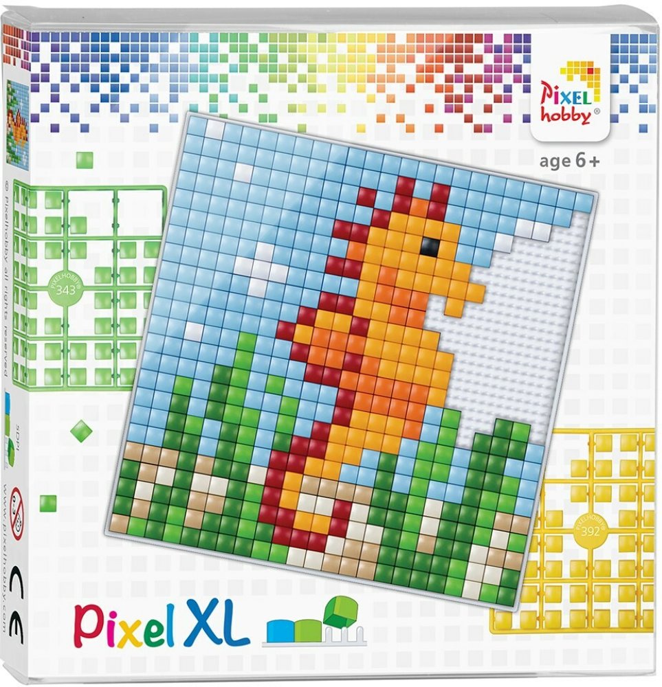 XL Pixel set je o něco náročnější pixelová sada pro děti (od 4 do cca 7 let). Tyto XL pixelové sety obrázky jsou čtyřikrát větší a obsahují více barev než Pixel set XL - základní . Pixely XL se nasazují na flexibilní čtvercovou základní desku s okrajem. Obrázek má rozměr 12 x 12 cm. Alternativně můžete vždy objednat základní desky, XL pixely a šablony samostatně.