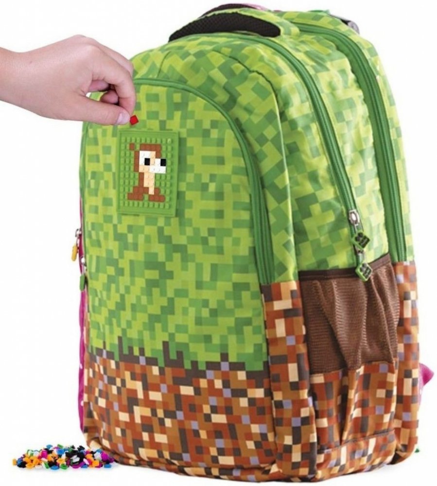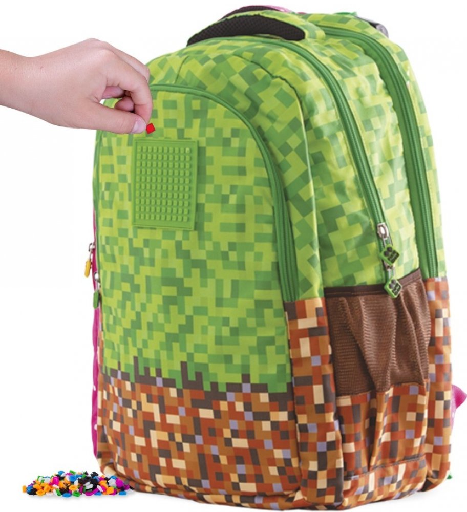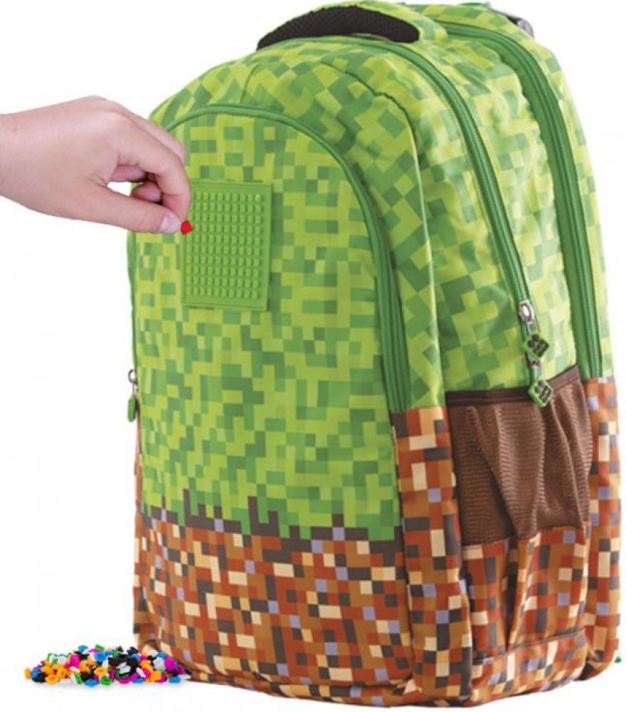 Na přední straně batohu je umístěn unikátní silikonový PIXIE CREW creative panel TM zelené barvy. Čtverec je o velikosti 10 x 10 bodů a k dispozici máte 97 pozic pro nekonečné množství motivů na každý den díky PIXIES (pixelům), které můžete kdykoli sundat a vyměnit za jiné. Ke každému batohu přikládáme balíček se 30 malými černými pixely pro sestavení obličeje CREEPERa. Inspiraci Tu můžete také čerpat na stránkách pixiecrewgallery. Pro neomezenou tvorbu obrázků doporučujeme k dokoupení malé PIXIES, které nabízíme ve 24 barvách nebo PIXIES s písmeny nebo multipixely (pixel o vel. 2x2 body) s obrázky.