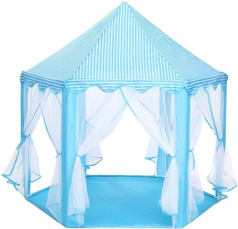Krásný modrý stan vhodný na zahradu i do interiéru. Díky pastelovému tónu se bude hodit do dětského pokojíku a vytvoří kouzelný herní nebo odpočinkový koutek. Stan má konstrukci z odolných plastových tyčí a spojů, díky kterým vše snadno spojíte dohromady. Konstrukce stanu je krytá jemnou a lehkou látkou v růžové barvě se světlejšími puntíky. Boční strany herního stanu tvoří jemná síťovina, která může být dekoračně uvázána ke stojkám nebo spuštěna a chránit před hmyzem či vytvořit iluzi soukromí. Rozměry složeného stanu 140 x 140 x 135 cm. Vhodné pro děti od 3 let.