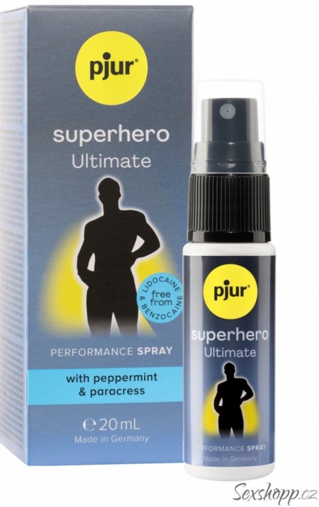 Ultimate - nejsilnější sprej pro muže z řady pjur superhero. Má inovativní komplex 6 účinných látek, který obsahuje panthenol, hamamelis (vilín), aloe vera, mátu peprnou, paracress a extrakt ze semen prosa. Sprej na penis dokáže snížit přecitlivělost pokožky, a tím prodloužit potěšení a sexuální výkonnost. Bez lidokainu nebo benzokainu.Na jednu aplikaci postačí 2-4 střiky.Pouze pro vnější použití....