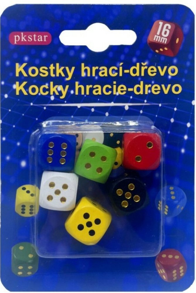 pkstar.cz Dřevěné hrací kostky barevné 6 ks 1,6 cm PK37-21