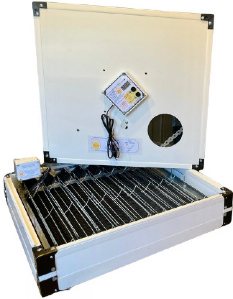 Líheň na drůbež, automatické otáčení, na 100 slepičích vajec, ukazatel teploty, regulace teploty 26-42°C. Jedná se o unikátní líheň svým konstrukčním provedením a intuitivním ovládáním. Tato líheň na kuřata, křepelky, husy, kachny a bažanty s výborným poměrem ceny a výkonu má skvělé výsledky líhnutí. V této praktické líhni vylíhne opravdu každý a dokonce funguje skvěle i jako dolíheň. Celý proces líhnutí budete mít pod kontrolou díky průhlednému okénku a digitálnímu displeji vyjímatelné řídící jednotky, na kterém lze pohodlně sledovat a nastavovat teplotu v líhni. Otočný rošt líhně a motorek budou za Vás v pravidelných intervalech otáčet vajíčka. Největším plusem líhně je materiál z kterého je vyrobena. Box líhně je vyrobený z izolačních sendvičových panelů s vynikající tepelnou izolací, drží stabilní podmínky uvnitř líhně a tím se zlepšuje i líhnivost vajec.