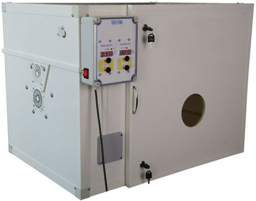 Automatická líheň na vejce, k líhnutí vodní i hrabavé drůbeže, skvělé izolační vlastnosti, automatické otáčení vajec, 5x otočný rošt na vejce, kapacita 500 slepičích vajec, s digitální regulací teploty, s alarmem proti přehřátí, s bezpečnostním chlazením, s digitální regulací vlhkosti, s vnitřním osvětlením, s teploměrem, s vlhkoměrem.