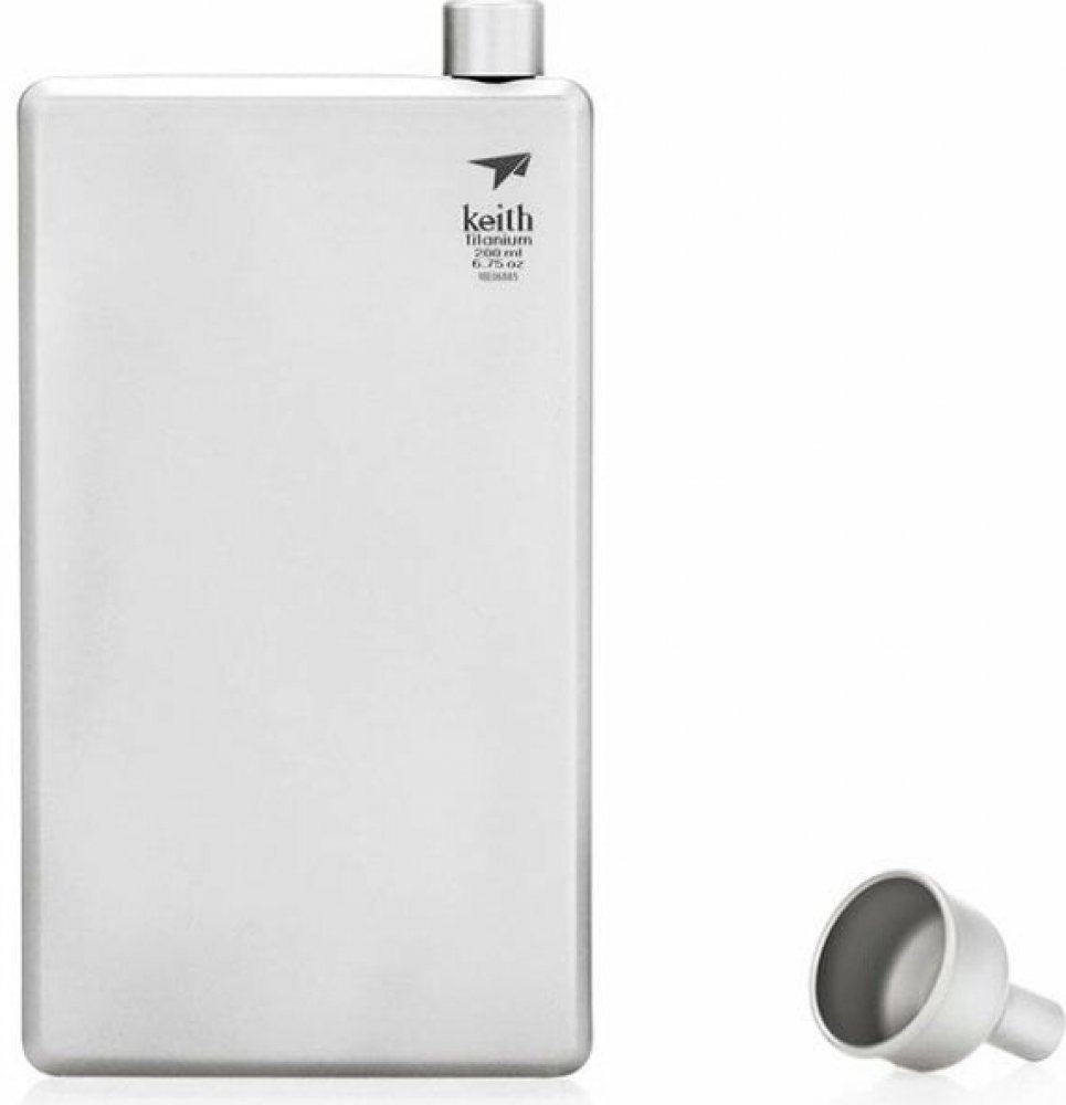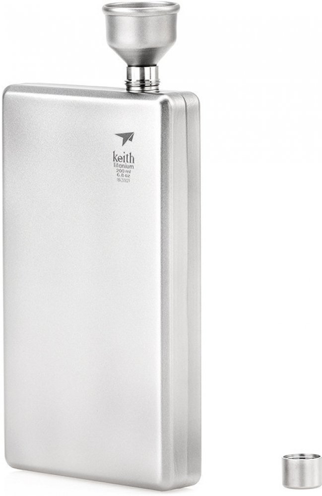 Titanová placatka Keith Titanium Jug 200 ml s nálevkou. Nezávadný pevný a lehký materiál. Placatka s titanovou nálevkou od výrobce, který je špičkou ve svém oboru. Je vyrobena z 0,4 mm tlustého broušeného titanu, který je lehký pevný a odolný.