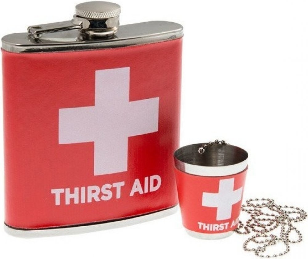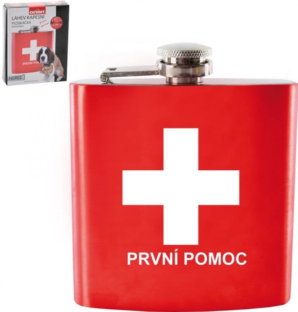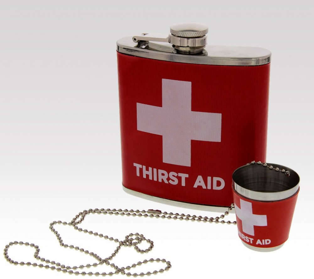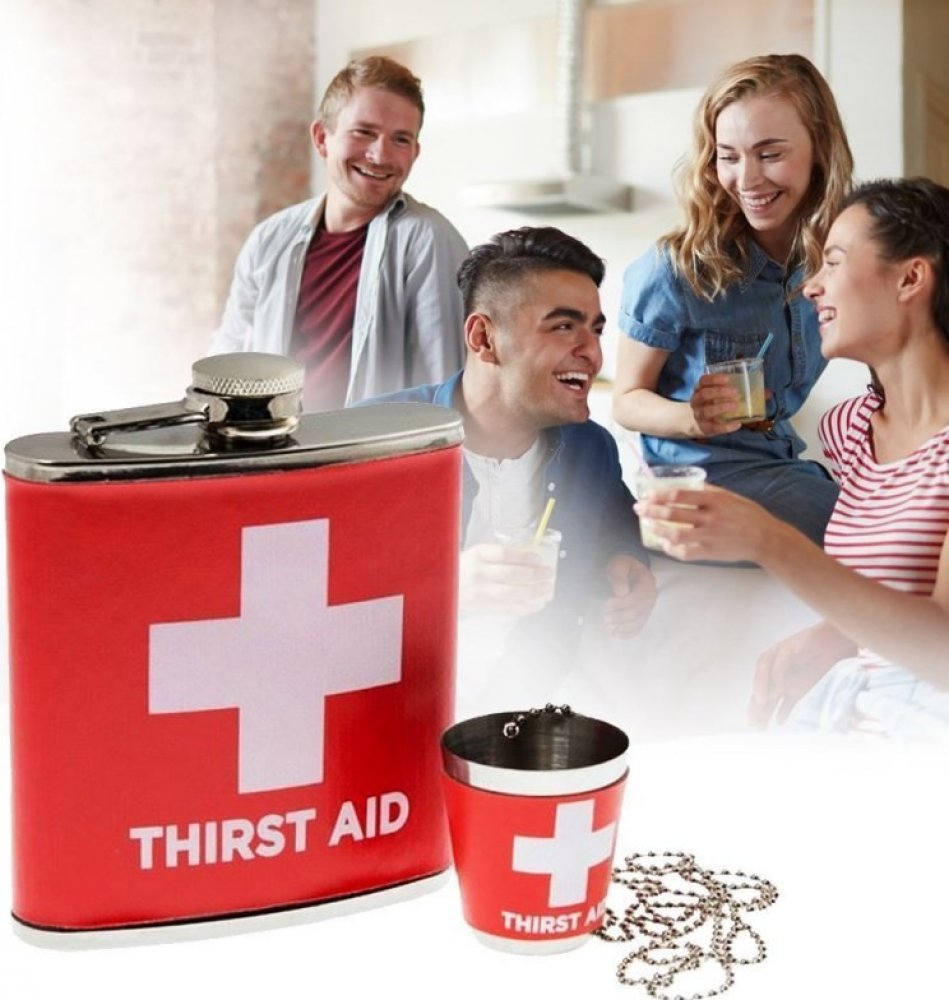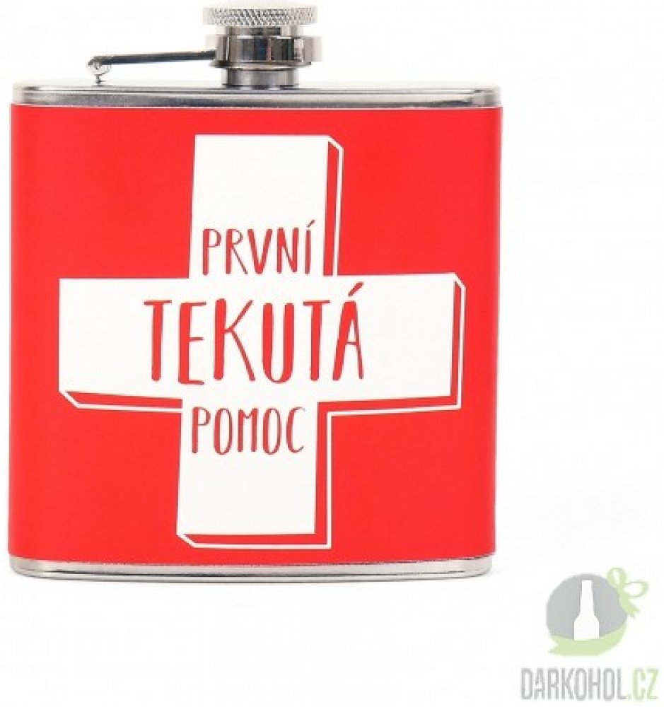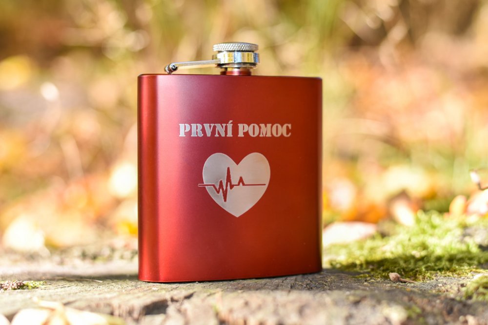 Chystáte se na oslavu a nevíte, co byste věnovali jako dárek? Překvapte oslavence či oslavenkyni touto dárkovou placatkou první pomoci. Placatka je lékem na všechny neduhy. Ale opatrně, léčba se nemá tolik přehánět, všeho s mírou! Praktická pojistka u butylky Vám zajistí, že víčko neztratíte. Díky řemínku je možno panáka zavěsit na krk, takže ho budete mít stále po ruce a nebudete ho muset hledat. Placatku jistě využije i na mnoho akcích.