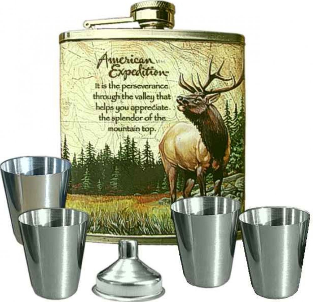 - likérka s pojistným uzávěrem o objemu cca 1,75 dcl- kazeta obsahuje likérku, 4 malé nerezové pohárky a nálevku- dodává se v kazetovém balení, vhodná jako dárkový předmět pro muže myslivce
