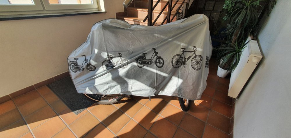 Kvalitní plachta vyrobená z vodoodpudivého materiálu PEVA, která je určena především na kolo. Pevnější materiál se zdvojenými spoji lépe ochrání před různými typy povětrnostních podmínek (deštěm, sluncem, prachem, sněhem atd.).
