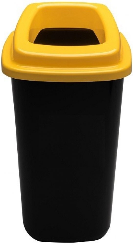 Plastový koš na tříděný odpad s víkem opatřeným otvorem pro bezdotykové vyhazovaní odpadků.