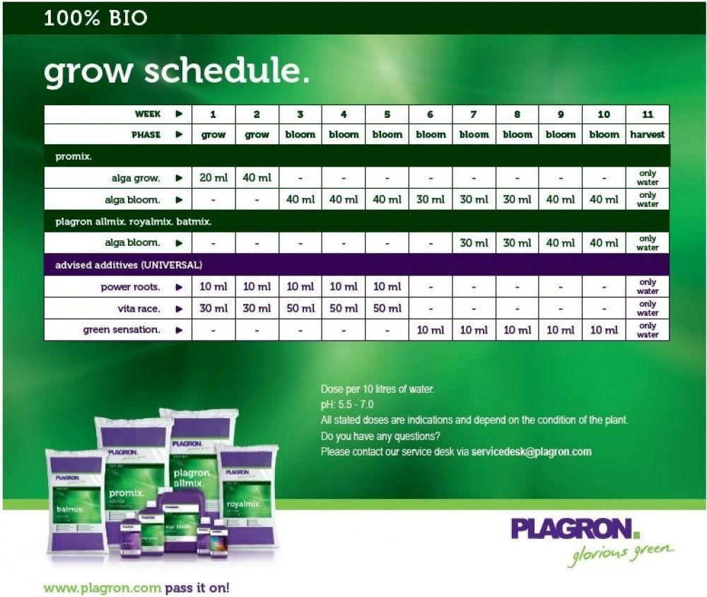 - Stáhni si růstové schéma 100% BIO Grow Schedule pro nejlepší využití a správné dávkování.