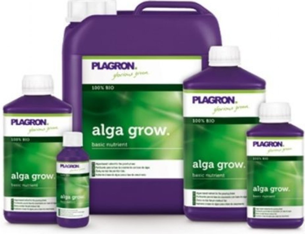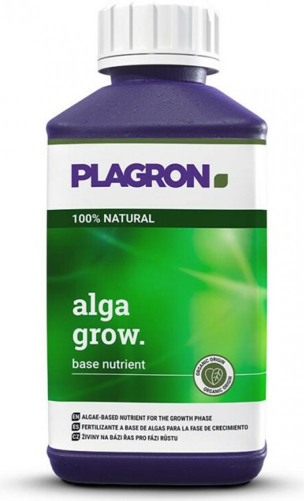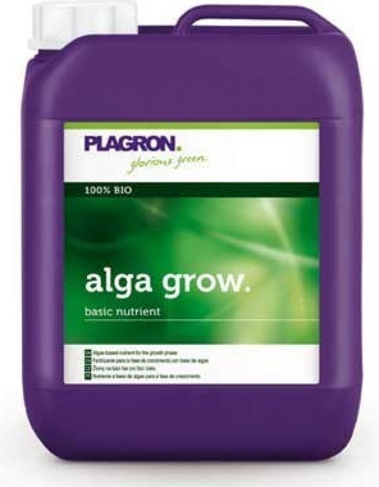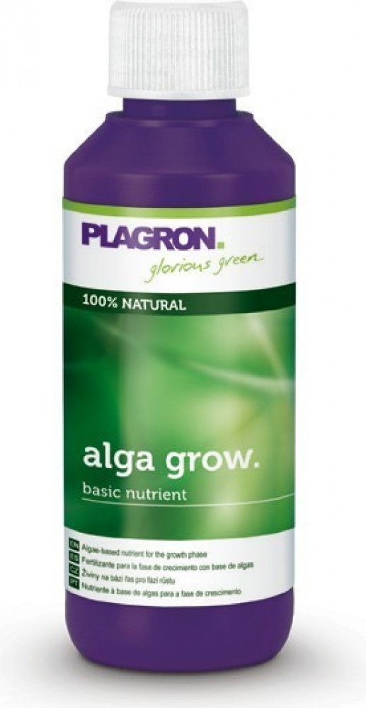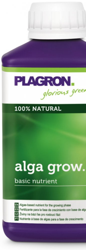 Hnojivo Plagron Alga Grow je tekuté organominerální hnojivo typu NPK, které je určené pro podpoření růstové fáze rostlin. Alga Grow lze použít pro všechny typy půd a půdních substrátů. Je v tom případě vhodné nejen pro zahrádkáře, ale také pěstitele ve sklenících a také pro pěstitele indoor rostlin. Hodnota NPK je u tohoto hnojiva pečlivě vyvážená v poměru 4-2-4. Obsahuje hořčík, aminokyseliny, síru, vápník a stopové prvky (Fe, B, Mo, Cu, Mn, Zn), které rostlina vstřebává snadno a bez jediného problému. Plagron Alga Grow nejen napomáhá růstu rostliny, ale taktéž posiluje její obranyschopnost a podporuje přirozenou cestou tvorbu chlorofylu. Podporuje silný a zdravý růst vaší rostliny.
