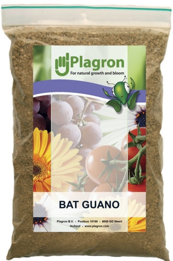 Plagron Bat Guano čili čisté organické netopýří guano je to nejvyváženější hnojivo, které příroda dokáže vyprodukovat a poskytnout vaší zahradě a jejím plodinám. Bat Guano excelentním způsobem stimuluje tvorbu kořenů a půdní život, podporuje zdravý růst a květ a zajišťuje vynikající vůni a chuť pěstovaných rostlin. Plagron Bat Guano je díky svým vlastnostem vhodné pro bio pěstitele, ale určitě nejen pro ně.