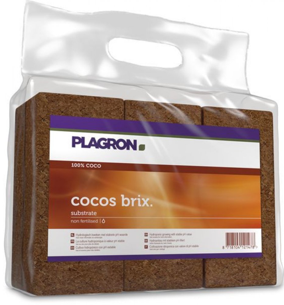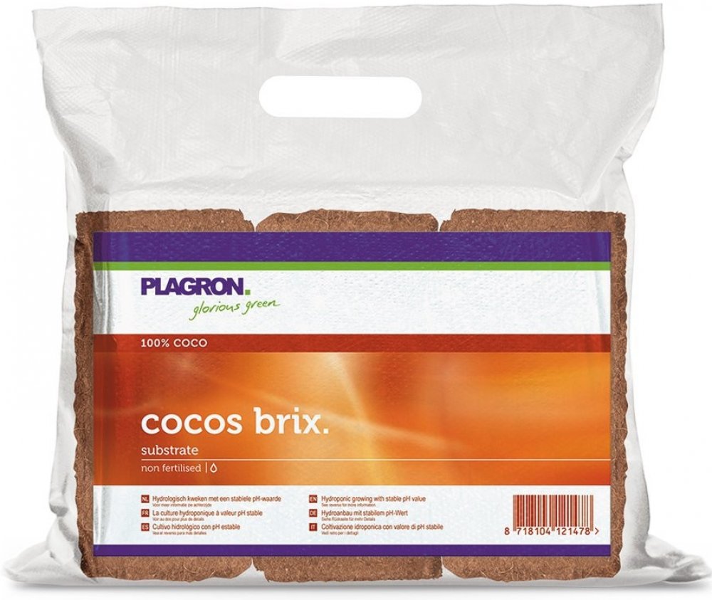 Brikety jsou oblíbené hlavně díky nízké hmotnosti a snadné přepravě. Kokosová briketa Plagron Cocos Brix obsahuje dehydrovaná kokosová vlákna a vyžaduje pro tvorbu 9 litrů kvalitního substrátu pouze 4.5 litru vody. Po zavodnění dobře hospodaří s vodou.