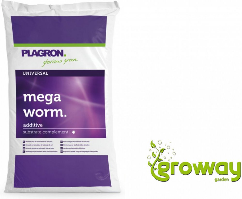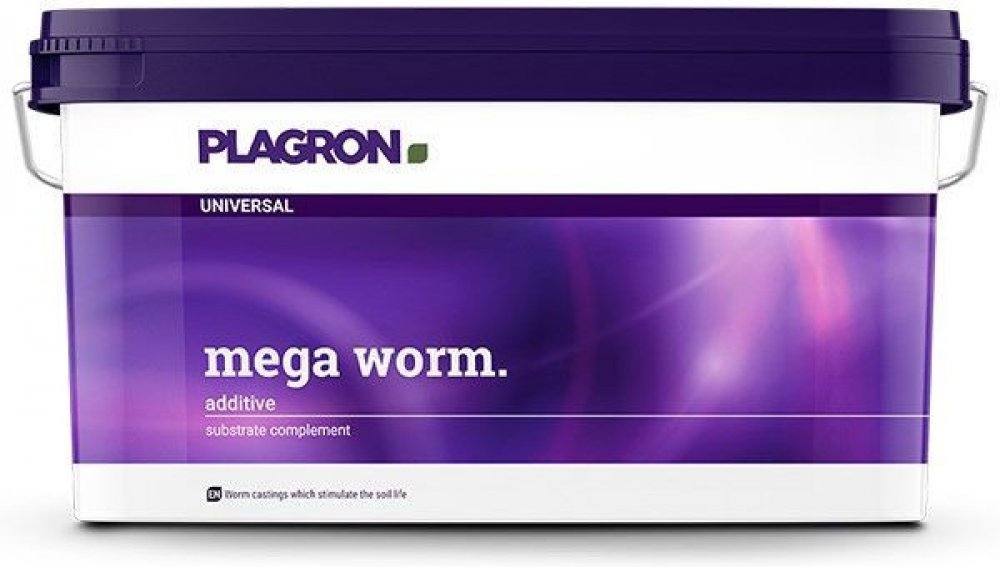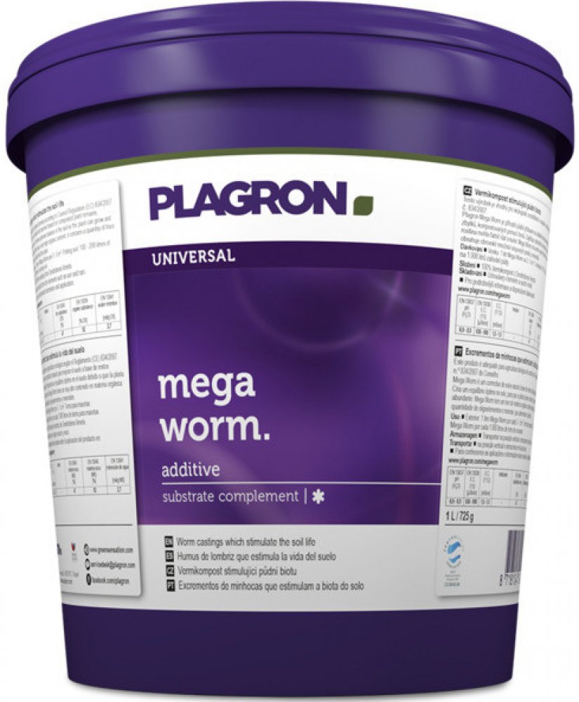Půdní doplněk Plagron Mega Worm vzniká zcela organickou cestou pomocí žížal, které rozkládají organickou hmotu na velmi účinné hnojivo. Nemíchá se s jinými Plagron substráty, protože všechny, kromě Lightmix, už Mega Worm obsahují. Využívá se hlavně pro obnovu použité zeminy nebo vylepšení běžné venkovní půdy při outdoor pěstování bylinek. Minimalizuje pravděpodobnost přehnojení.