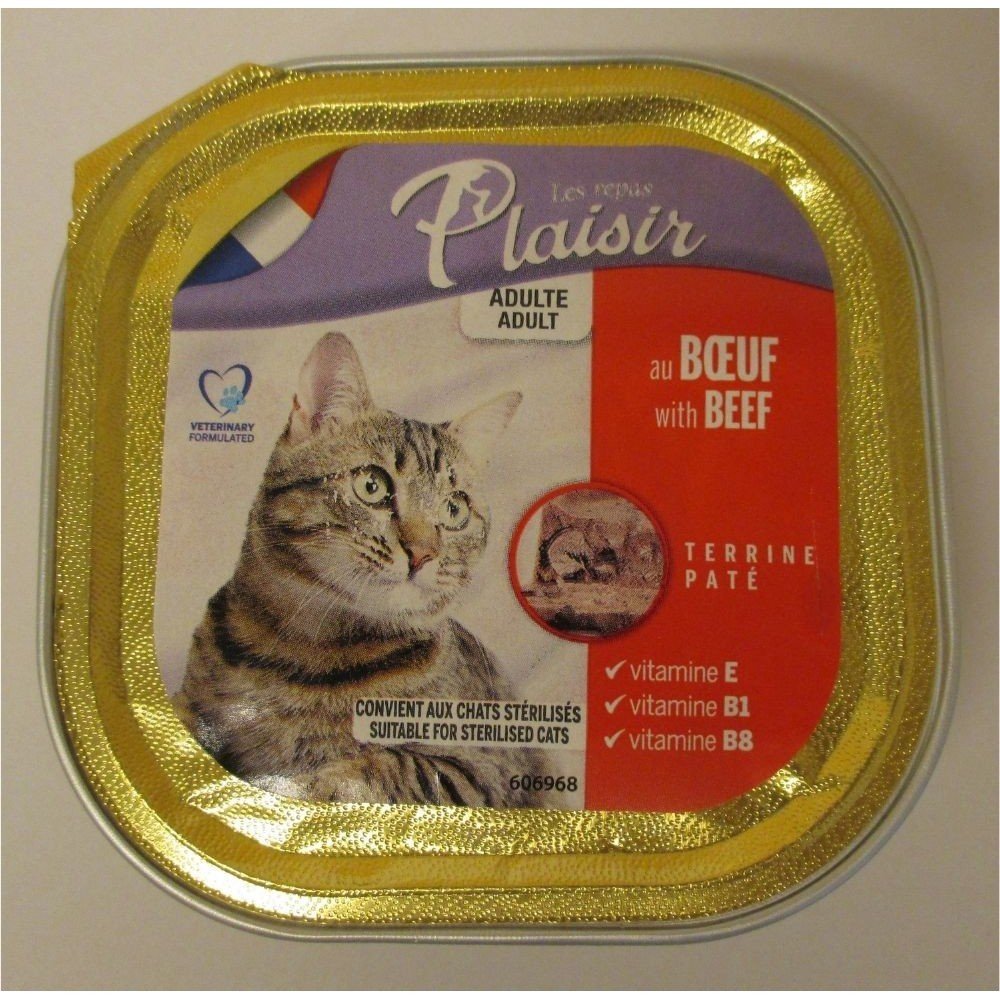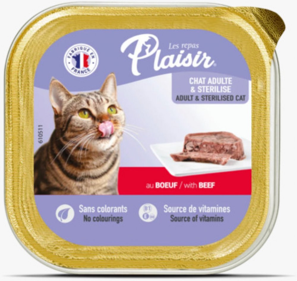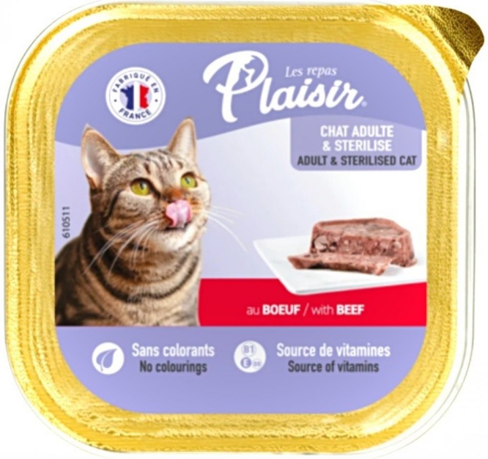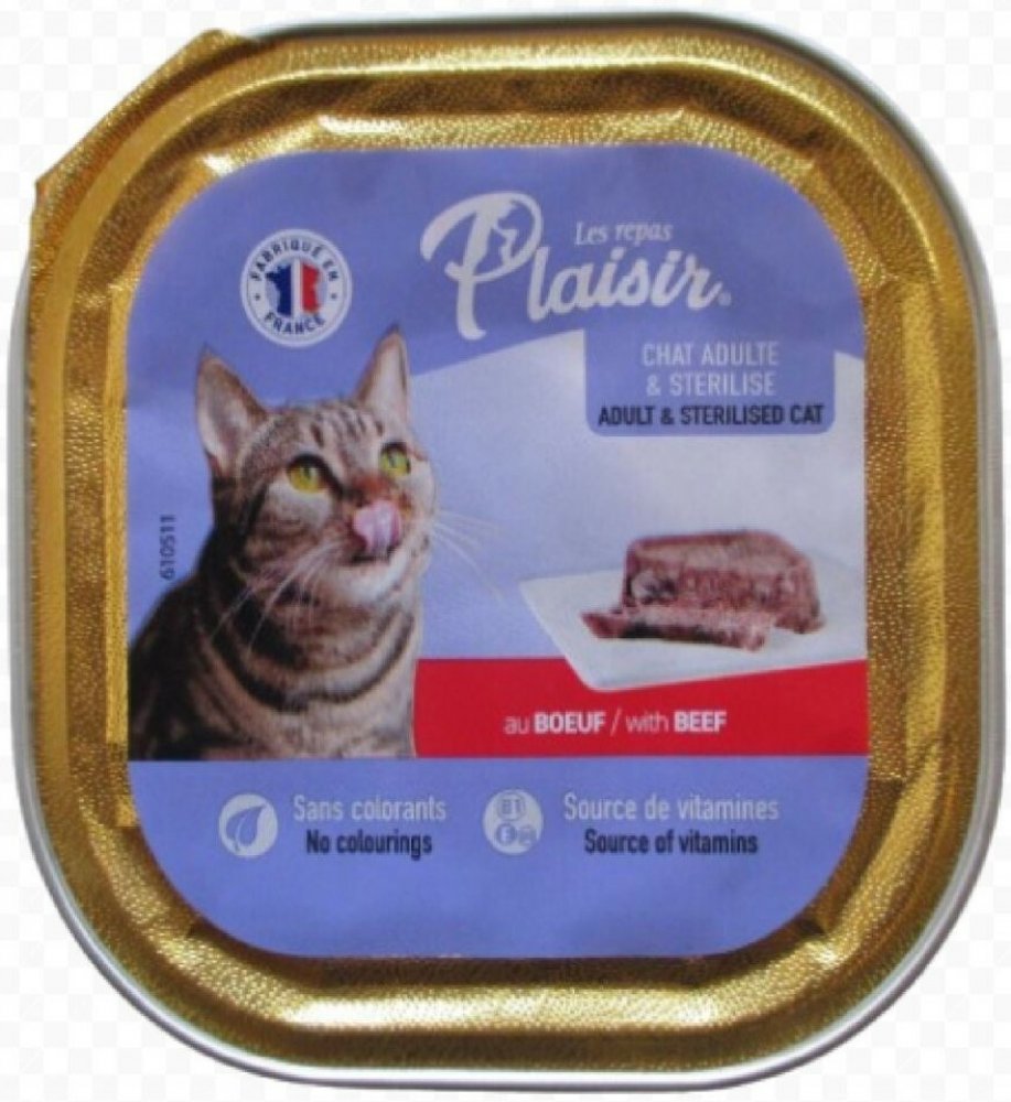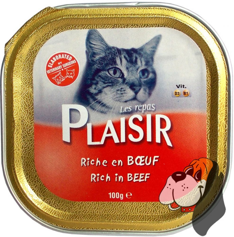 Plaisir Cat vanička hovězí je kompletní krmivo ve formě chutné vaničky s příchutí hovězího určené pro dospělé kočky.