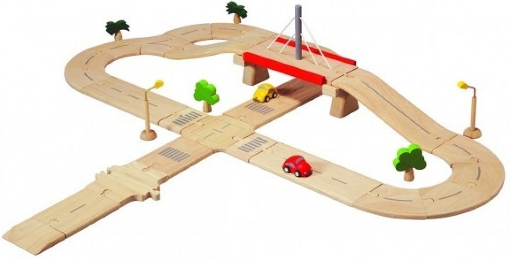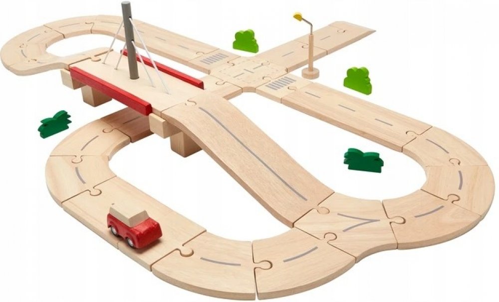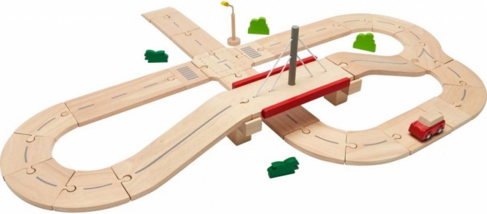Dřevěná autodráha z dílny společnosti Plan Toys obsahuje silnice a stromy, lampy a auto. (celkem 38 ks). Skvělá aktivita pro všechny malé motoristy, kteří mají rádi dobrodružství.
