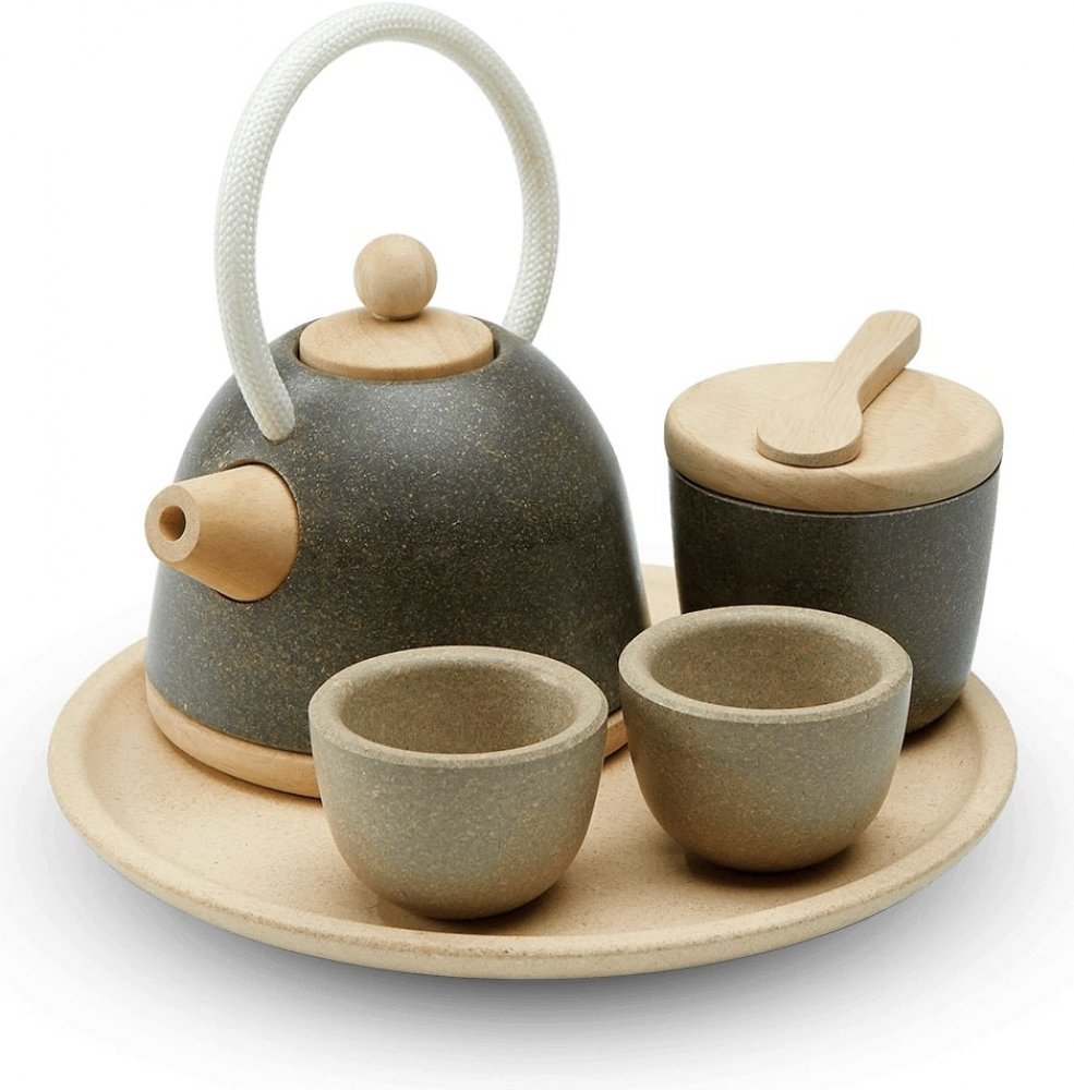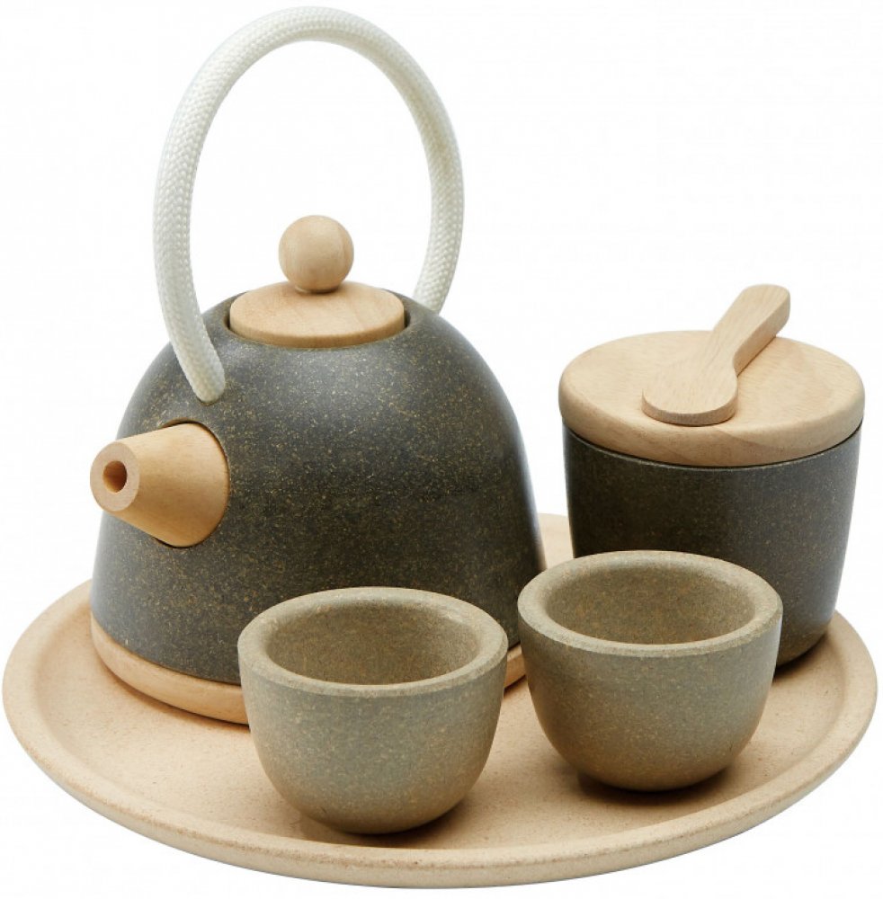 Uspořádejte čajový dýchánek s touto krásnou sadou od firmy Plan Toys. Set zahrnuje čajový podnos, dva šálky na čaj, čajovou misku a konvičku. Malé hostitelky a hostitelé mohou přichystat spoustu druhů čajů, upéct dort a vychutnávat si krásu daného okamžiku. Nechte děti rozvíjet představivost, motoriku a koordinaci a hrát role dospělých. Budou nadšené.
