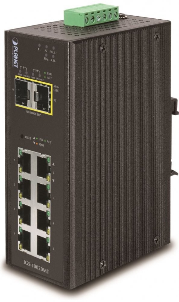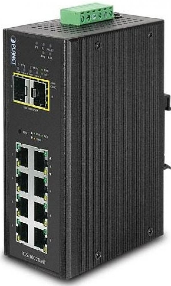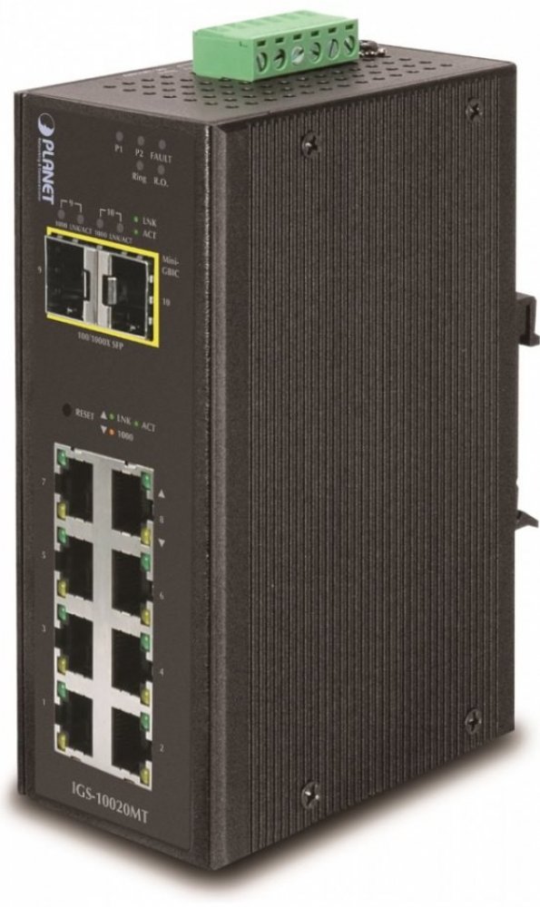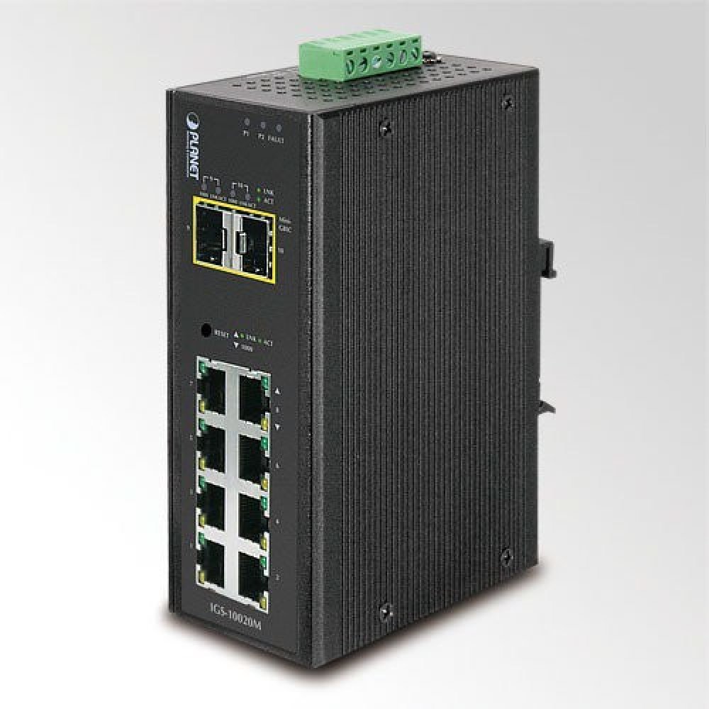 Switch, průmyslový, 8x 10/100/1000, 2x 100/1000 SFP, management, -40 +75°C PLANET IGS-10020MT