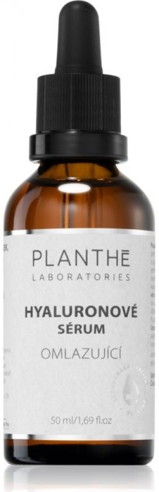 PLANTHÉ Hyaluronové sérum omlazující obsahuje jedinečnou kombinaci kyseliny hyaluronové, růžové vody, extraktů zeleného čaje a chmele.