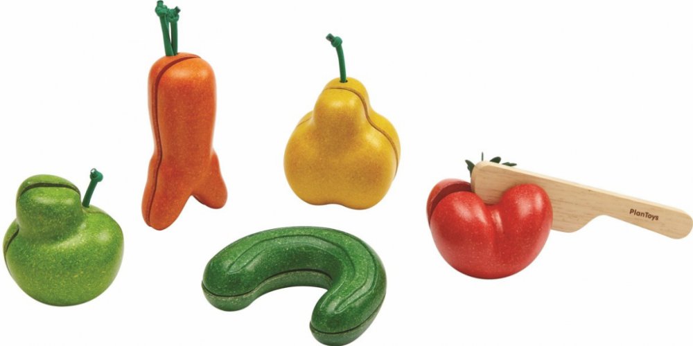 Sada obsahuje nůž a 5 kusů ovoce a zeleniny ke krájení: jablko,...