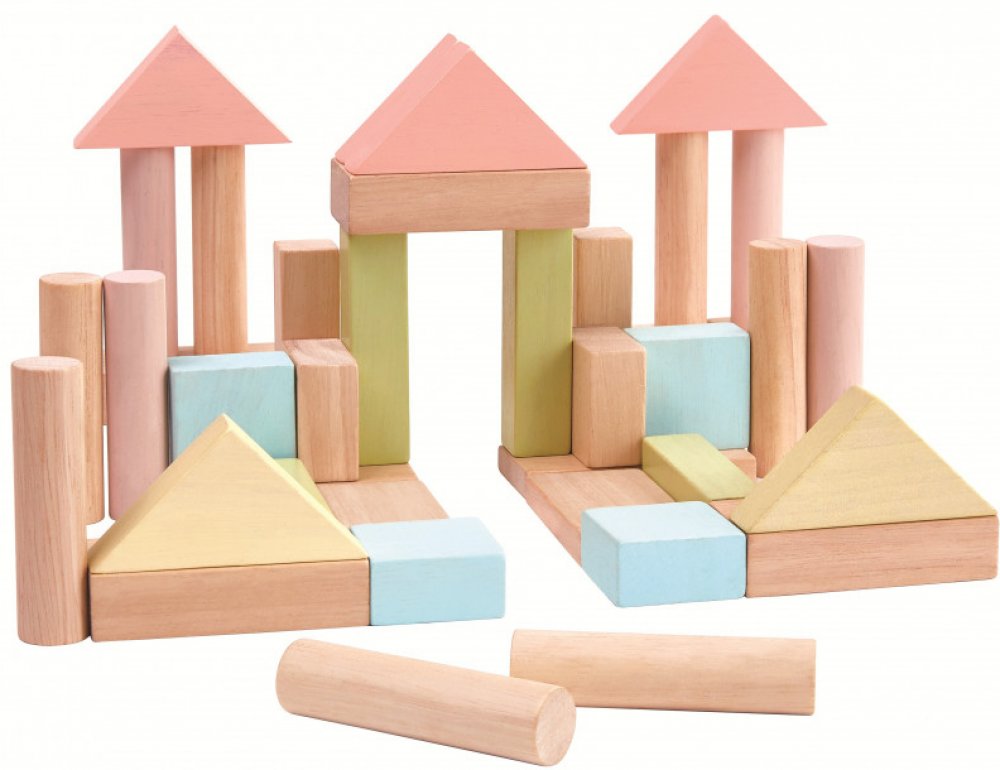 Tato sada pomáhá zlepšit matematické dovednosti dětí, a to díky různým geometrickým tvarům. Děti mohou kostky třídit, rozeznávat velikosti, směry i rovnováhu při rozvoji své jemné motoriky. Koordinace oko-ruka se procvičuje pokládáním jednotlivých bloků na sebe a jejich následným vyvažováním. Sada rovněž pomáhá rozvíjet jazykové a komunikační dovednosti, ať už si dítě hraje samo, nebo s ostatními kamarády.
