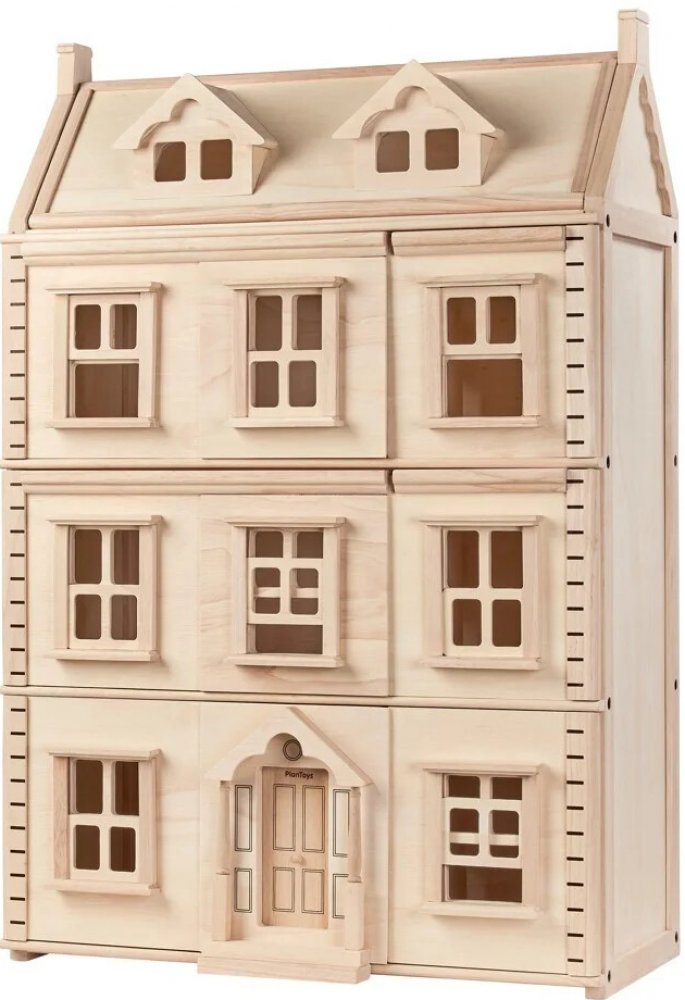 Tento domek má 3 patra včetně podkroví. Mezi patry je umístěné schodiště, takže jednotlivá patra jsou průchozí. Průčelí domu lze otevírat a zavírat pomocí 2 otevíracích předních stěn. Tajemná místnost v podkroví bude sloužit dětem dle jejich přání. Velikost: 64 x 32 x 72,9 cm Vhodné pro děti od 3 let. Součástí domku není nábytek! PLAN TOYS Plan Toys je již 30 let úspěšně fungující firma v oboru výroby vysoce kvalitních ekologických hraček. Firma vznikla v roce 1981 na jihu Thajska a v této oblasti funguje dodnes. Ve své produkci využívá dřevo z kaučukovníků, které již neprodukují latexové mléko. Společnost toto dřevo vykupuje od farmářů, pro které již nemá žádnou hodnotu, ale rovněž dbá na to, aby byly opětovně vysazovány stromy nové. Právě použitím těchto stromů, je výroba trvale udržitelná, ekologická a navíc z vysoce kvalitního materiálu. Výrobní proces je navržen tak, aby se za využití solární energie a biomasy maximálně šetřila energie a nedocházelo k žádné produkci odpadu. PlanToys používá ve své výrobě hraček lepidlo bez formaldehydů a barvy na vodní bázi, které jsou bezpečné, bez olova a jiných těžkých kovů. Pro obaly a tištěné materiály se využívá recyklovaný papír. Hračky mají certifikát FSC (pro ekologicky šetrné, sociálně prospěšné a ekonomicky životaschopné obhospodařování lesů) a ISO 9001 (pro vysokou kvalitu produktů) a 14001 (management životního prostředí). Firma získala akreditaci o sociální odpovědnosti (OHSAS 18001), což vypovídá o perfektním vztahu k zaměstnancům a vytváření bezpečného a zdravého pracovního prostředí. Firma zaměstnává mimo jiné také osoby se zdravotním postižením, pravidelně sponzoruje mnoho aktivit pro děti, jako jsou dětské kluby, hřiště, knihovny a herny, ale dokonce i spolupracuje s maminkami dětí s různým postižením a spolu s nimi vytváří hračky, které mohou těmto dětem pomoci. Hračky od PlanToys podporují hru, kreativní mysl a učí děti o světě kolem nás. O jejich úspěchu vypovídají také desítky ocenění z celého světa.