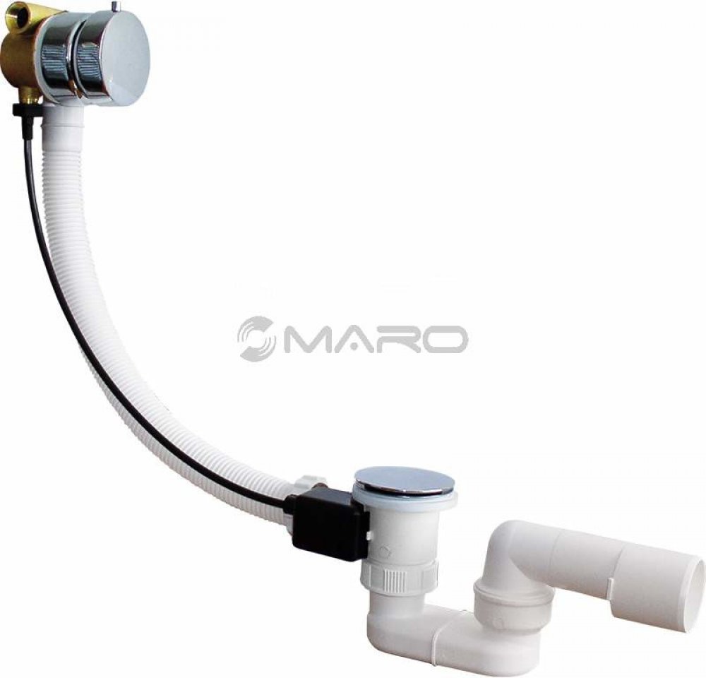 Plast Brno Sifon vanový automat s napouštěním přepadem • pro kombinaci s podomítkovou baterií • s kovovou ovládací rozetou • s kovovým tělem přepadu • s kovovou zátkou 72 mm • odpad 40/50 mm • pro vany s otvorem pro odpad 52 mm