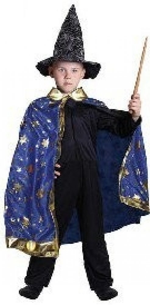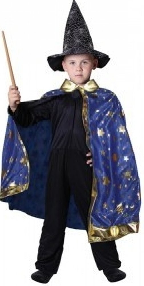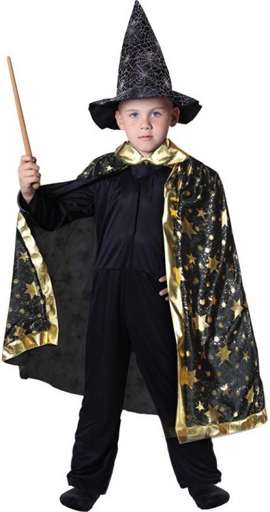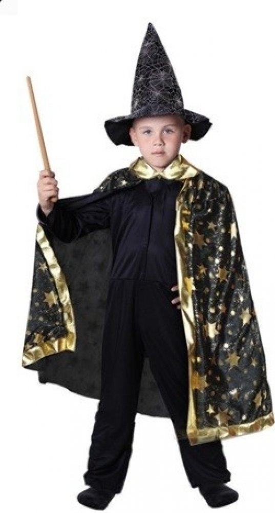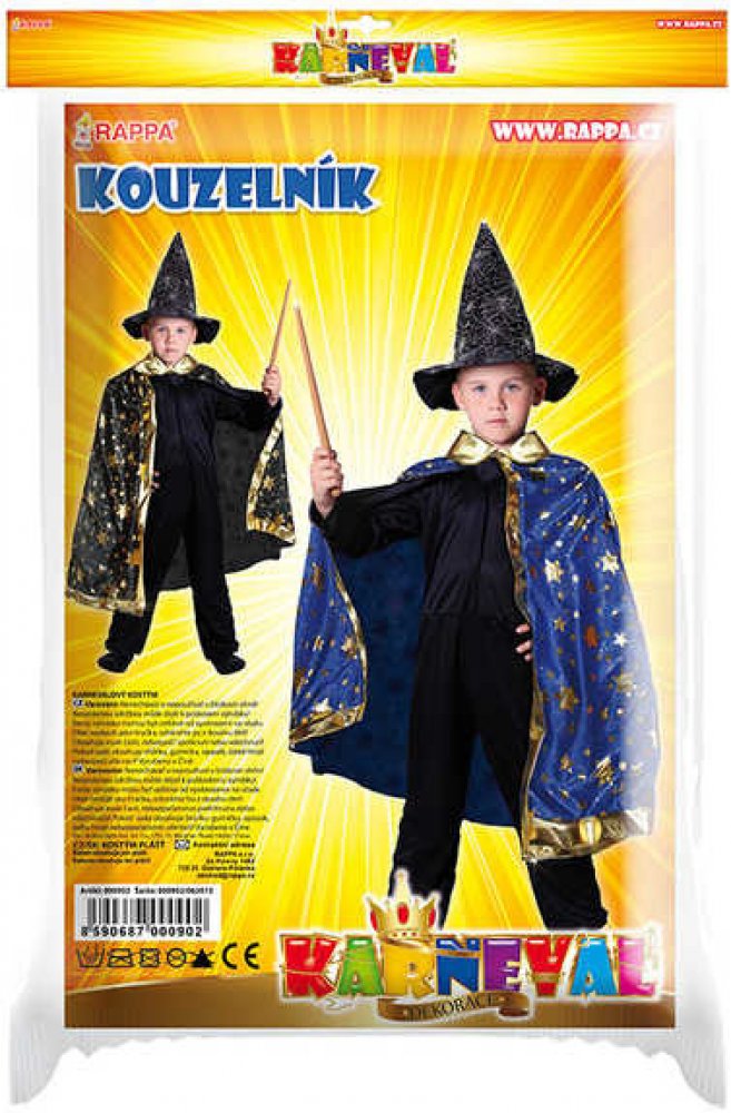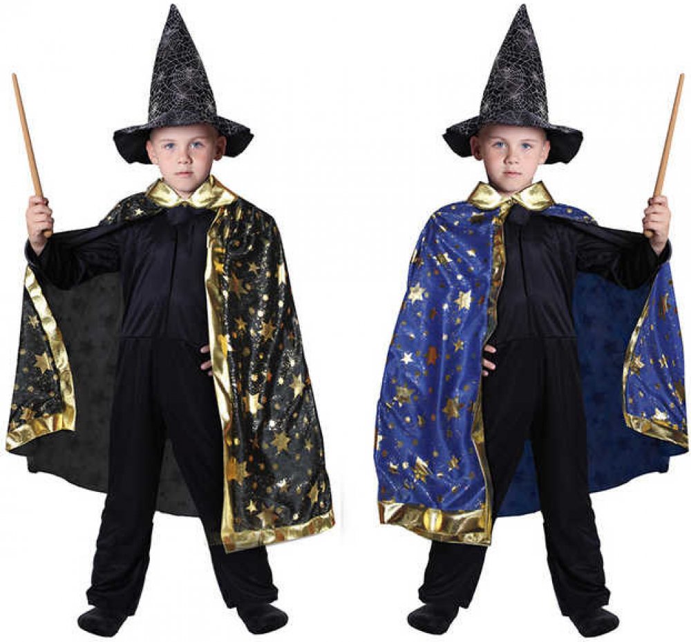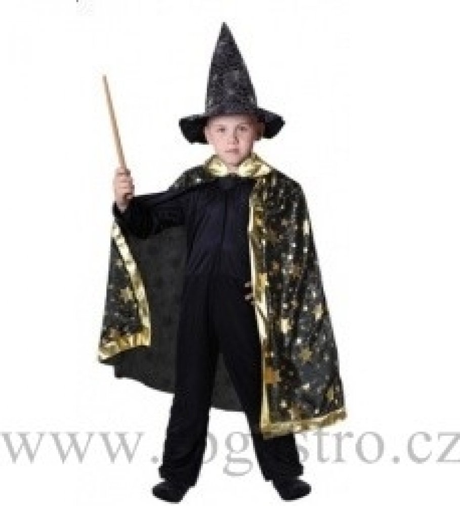 Kouzelný čarodějnický plášť! Tento magický kousek je určen pro všechny holky a kluky ve věkovém rozmezí 3-10 let (104-150 cm). Plášť na zavazování je dekorován zlatými hvězdičkami a lemováním.