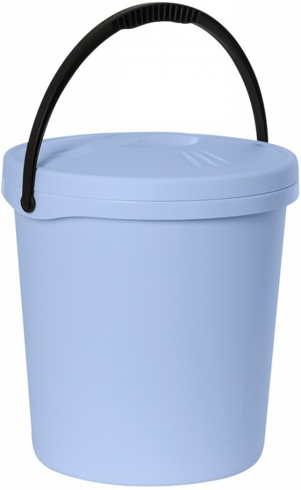 Silnostěnný kbelík s víkem, ve kterém je prohlubeň pro prsty pro snadné odstranění a opětovné umístění víka na kbelík. Pohodlná rukojeť pro přenášení kbelíku včetně obsahu.