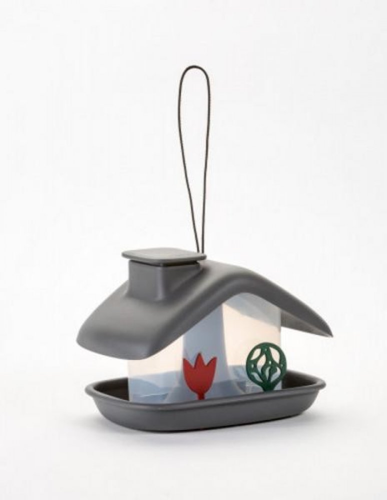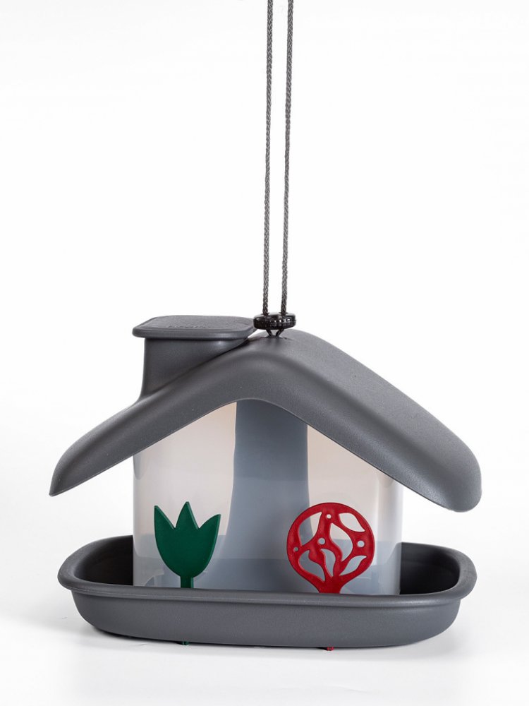 Krmítko má příjemné barevné provedení a hravý design.