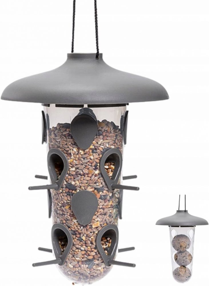 Robin je plastové krmítko s bidýlky. Rozmazlujte ptačí hosty pestrou stravou - nabídněte tukovou směs, bobuloviny nebo olejná semena. Po oddělání bidýlek může sloužit i jako zásobník na lojové koule. Plastové síťky, ve kterých běžně bývají zavěšeny lojové koule, představují velké nebezpečí pro ptáky, kterým se do nich zamotávají drápky. Divoká zvířata a psi mohou navíc síťku spolknout, protože jim lákavě voní. Je proto lepší jim koule naservírovat v tomto krmítku. Krmítka instalujte pouze zavěšením na šňůrku. Rozměry: pr. 16 x 22 cm Objem zásobníku na lojové koule: 3 ks Objem zásobníku na sypkou směs: 0,55 l