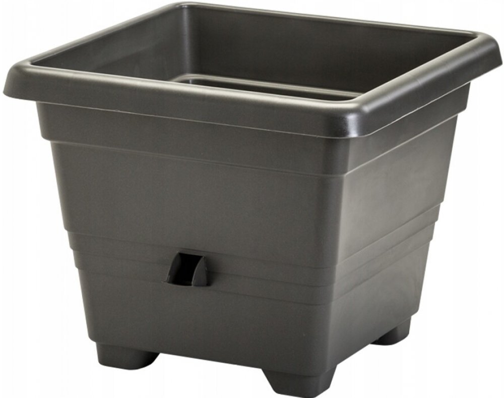 Plastový, samozavlažovací květináč čtvercového půdorysu s hladkým povrchem. Přístup vzduchu ke kořenům je zajištěn výklopným otvorem, který zároveň slouží k zalévání květin a jako přepadový otvor. Vhodný pro pěstování zeleniny, ale i pro všechny druhy letniček. Květináč lze kombinovat s truhlíky Bergamot. Množství substrátu: 31 l. Množství vody: 11 l. Rozměry: 50 cm x 50 cm. Barva: antracit.