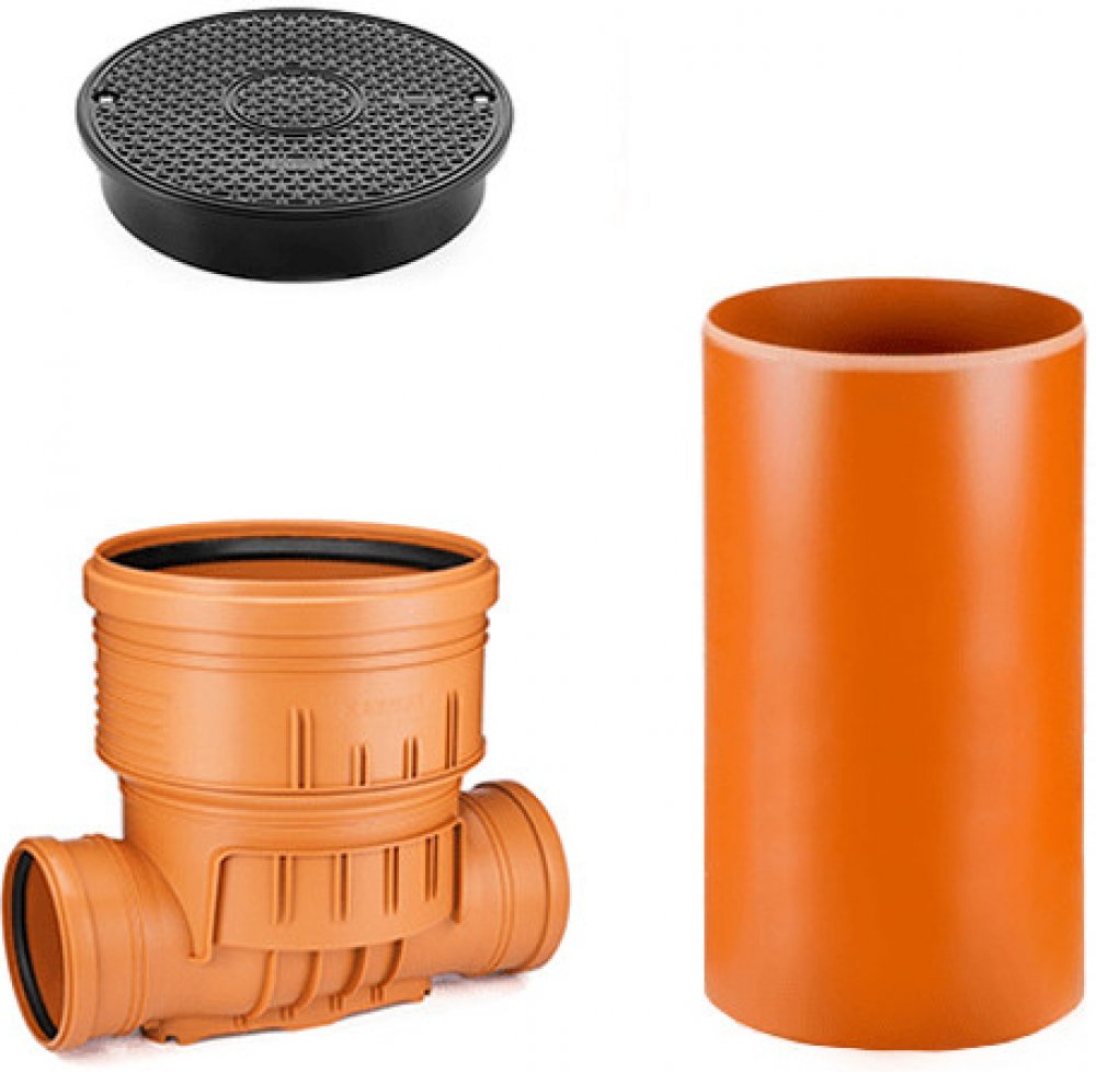 Revizní šachta se skládá ze šachtového dna se dvěma vstupy DN 160, šachtového prodloužení (kanalizační korugovaná trubka DN 400) a plastového poklopu o nosnosti 2000 kg. Těsnost spojů zajišťují pryžová těsnění.
