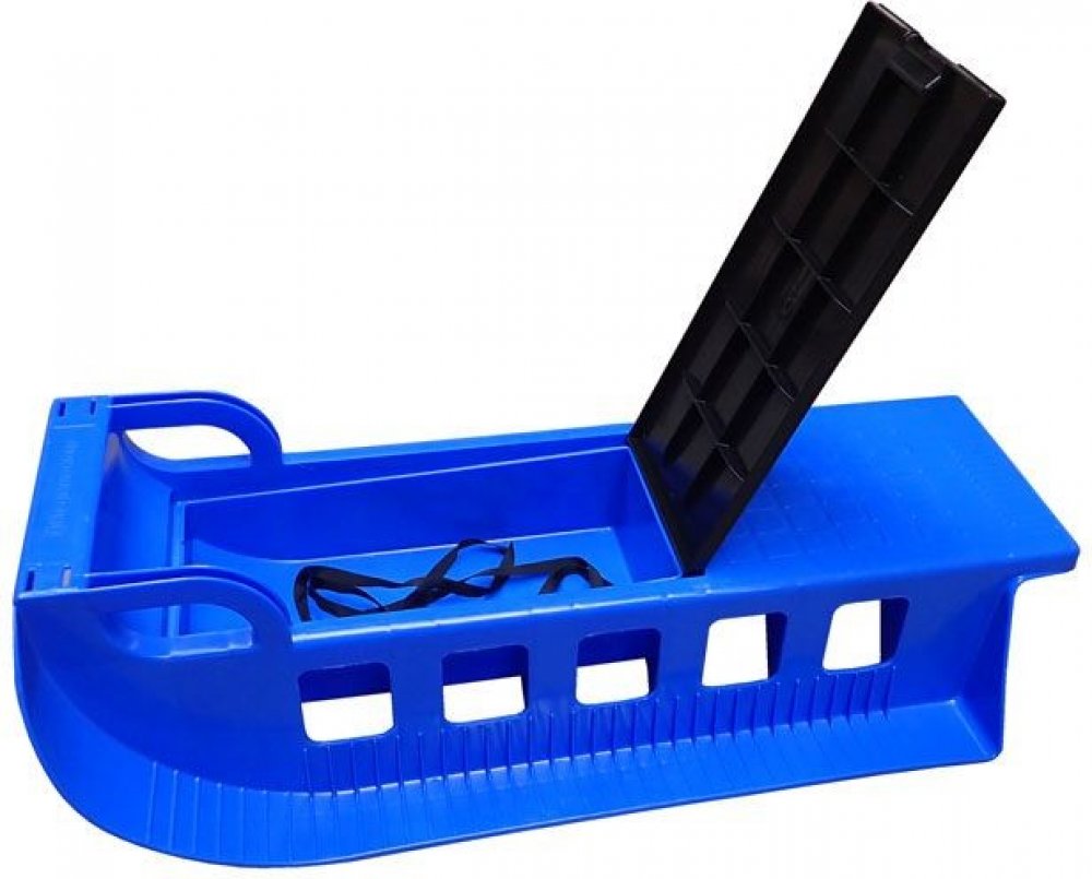 Pevné a lehké plastové sáňky s popruhem pro tahání, madly a úložným prostorem pod sedátkem. Popruh je umístěn v úložném prostoru. Skluznice jsou rozšířené pro opření nohou. Sáně jsou určeny pro rekreační sport. Doporučené maximální zatížení saní je 80 kg. Rozměr výrobku: 85 x 41 x 25 cm Vhodné