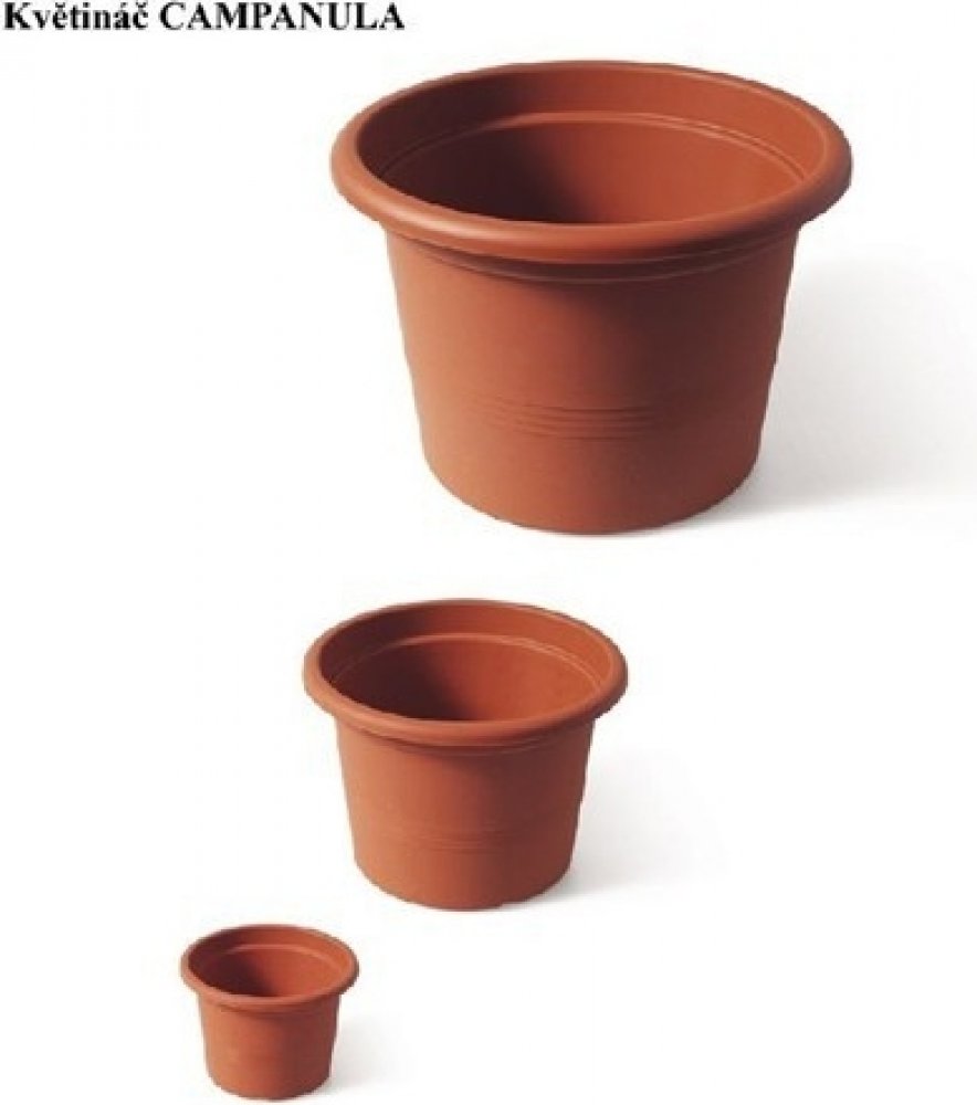 Květináč Campanula je kulatý, kvalitní a pevný květináč s masivním okrajem. Vhodný pro použití venku i v interiéru. Květináč pojme větší množství hlíny, takže zasadit mohutnější rostlinu se stává snazší. Květináč nabízíme v několika velikostech a barvách. Květináč Campanula se stává nutností pro každého vášnivého zahradníka. Ke květináči nabízíme samostatně misku pod květináč Primavera, která tak doplňuje celkový vzhled. Parametry: Rozměry: 9 výška: 7 cm Průměr dna: 7 cm Rozměry: 11 výška: 8 cm Průměr dna: 8 cm Rozměry: 13 výška: 10 cm Průměr dna: 10 cm Rozměry: 15 výška: 11 cm Průměr dna: 11 cm Rozměry: 17 výška: 12 cm Průměr dna: 12 cm Rozměry: 20 výška: 14 cm Průměr dna: 14 cm Rozměry: 23 výška: 17 cm Průměr dna: 17 cm Rozměry: 28 výška: 20 cm Průměr dna: 20 cm Rozměry: 34 výška: 24 cm Průměr dna: 24 cm Rozměry: 40 výška: 28 cm Průměr dna: 28 cm Rozměry: 50