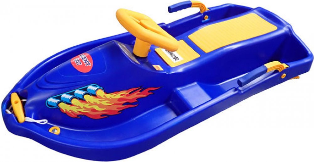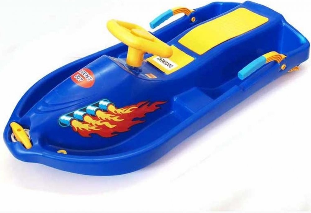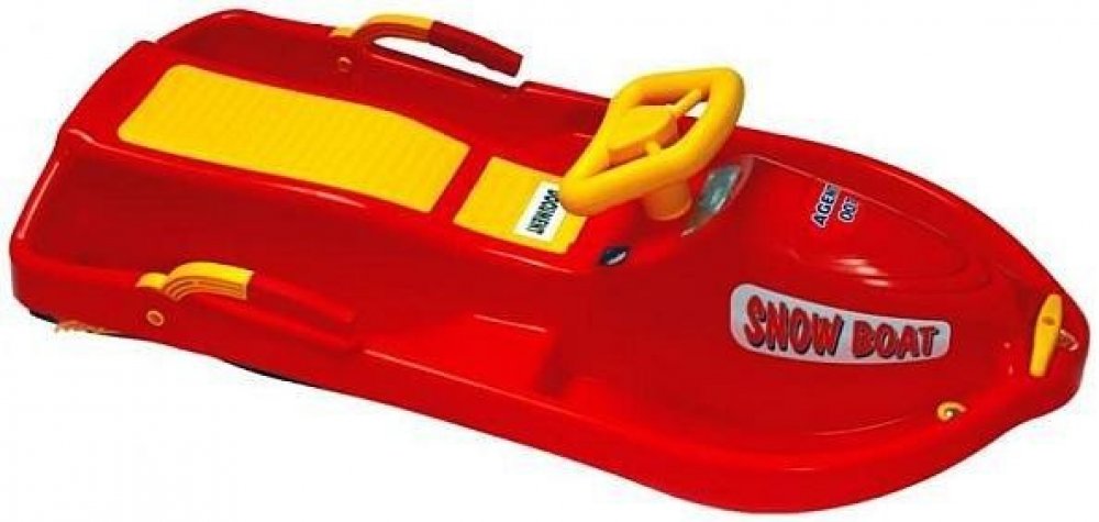 Model dětských snů, oblíbené a vysoce funkční umístění brzd v masivním provedení, originální realizace se čtyřmi lyžinami zaručuje snadné zatáčení, schránka na drobnosti, čelní deformační zóna pro větší bezpečí. Bob plastový řiditelný s volantem a brzdami - Snow Boat - určeno pro rekreační sport. Bob je opatřený kovovými táhly na řízení čtyř plastových lyží, což zajišťuje bezpečné ovládání bobu při jízdě. Bob má také dvě masivní pákové brzdy, které umožňují bezpečné zastavení bobu.