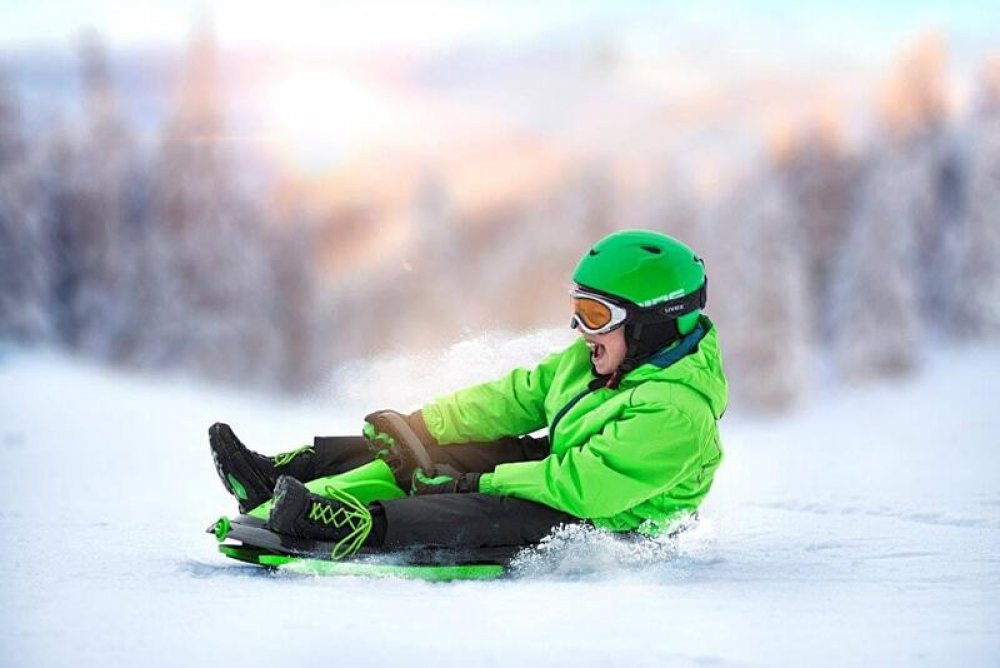 Stylový design závodní formule. Středová brzda pro větší bezpečí. Originální provedení se čtyřmi lyžinami. Zaručuje snadné zatáčení. Zatáčení pomocí diferenciálu zvyšuje rychlost v zatáčkách, protože každá lyže může zatočit pod jiným úhlem. Samonavíjecí mechanismus tažného lana. Masivní brzda s pružinou pro navrácení do původní polohy. Žádné kovové prvky ani šrouby, nemusíze mít obavu z koroze a montáž není nutná.