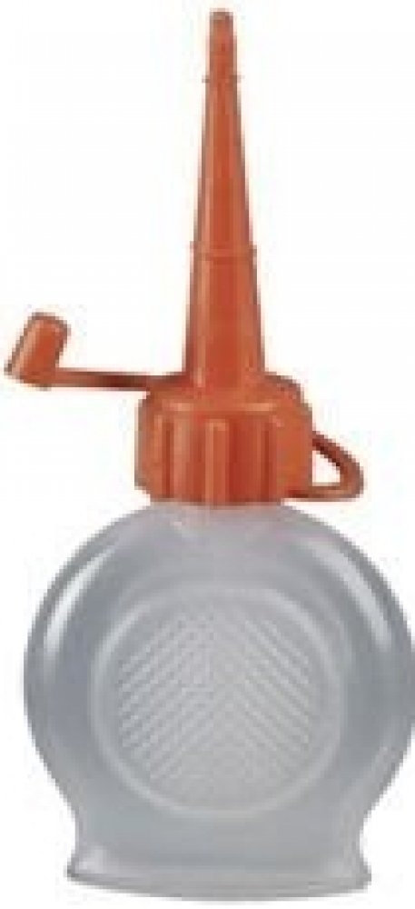 Transparentní olejnička bez pumpičky s objemem 20 ml a plastovou hubičkou s uzávěrem z odolného polyethylenu (LDPE) pro oleje, kyseliny a chemikálie.