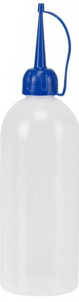 Praktická, jednoduchá, transparentní olejnička bez pumpičky s plastovou hubičkou s uzávěrem z odolného polyethylenu (LDPE) pro oleje, kyseliny a chemikálie.