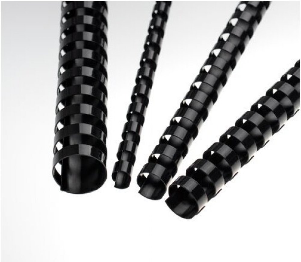 Plastové hřbety černé pro vazbu 151-180 listů/80 g papíru.