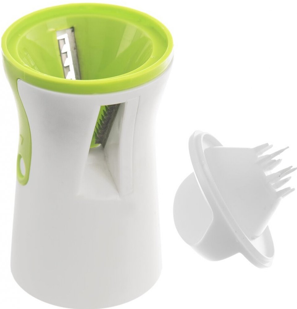 Kráječ zeleniny vám pomůže připravit originálně vypadající saláty, chutné a zdravé zeleninové špagety nebo efektní spirálové ozdoby, květy. Výroba je velmi snadná a rychlá. Podle způsobu nastavení a využití vnitřního dílu kráječe je možné si zvolit 3 způsoby krájení – spirály, tenké nudličky a širší nudličky. Využijete na mrkev, okurku, cuketu. Chránič prstů zamezí úrazu o ostré břity – zeleninu na něj nasadíte pomocí bodců.