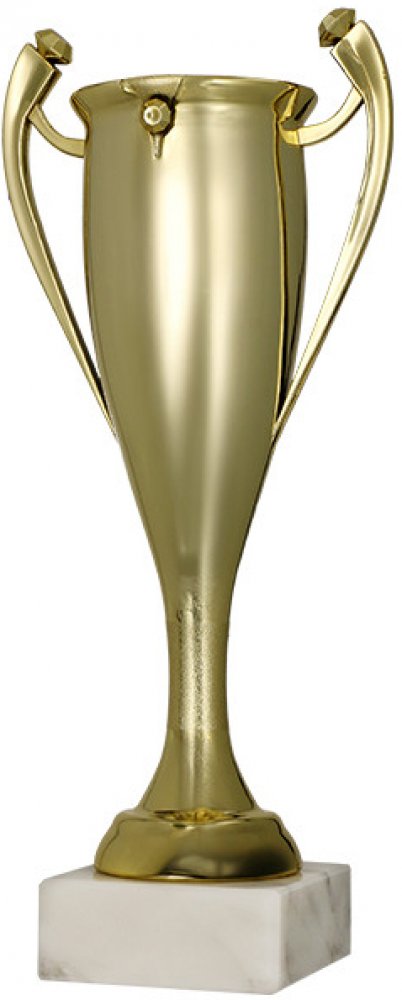 Plastový pohár ve zlatém provedení s tradičními liniemi v moderním pojetí je originálním dílem designu, který klade důraz na jednoduchost. Klasický tvar poháru doplňuje kvalitní mramorový podstavec. Pohár, který nese ve svém vzhledu nádech luxusu je skvělou volbou pro ocenění vítězů, kteří si zaslouží být odměněni za své úsilí a snahu. Trofej je dostupná v několika velikostech .