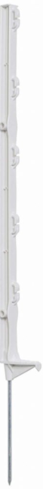 Kvalitní sloupek s jednoduchým nášlapem pro elektrický ohradník v bílé barvě s 5 očky. Materiál s příměsí ze skelných vláken a vysokou UV stabilitou je odolný proti zlomení. Robustní kovová špice. Celková výška sloupku 70 cm, výška nad zemí 52 cm.