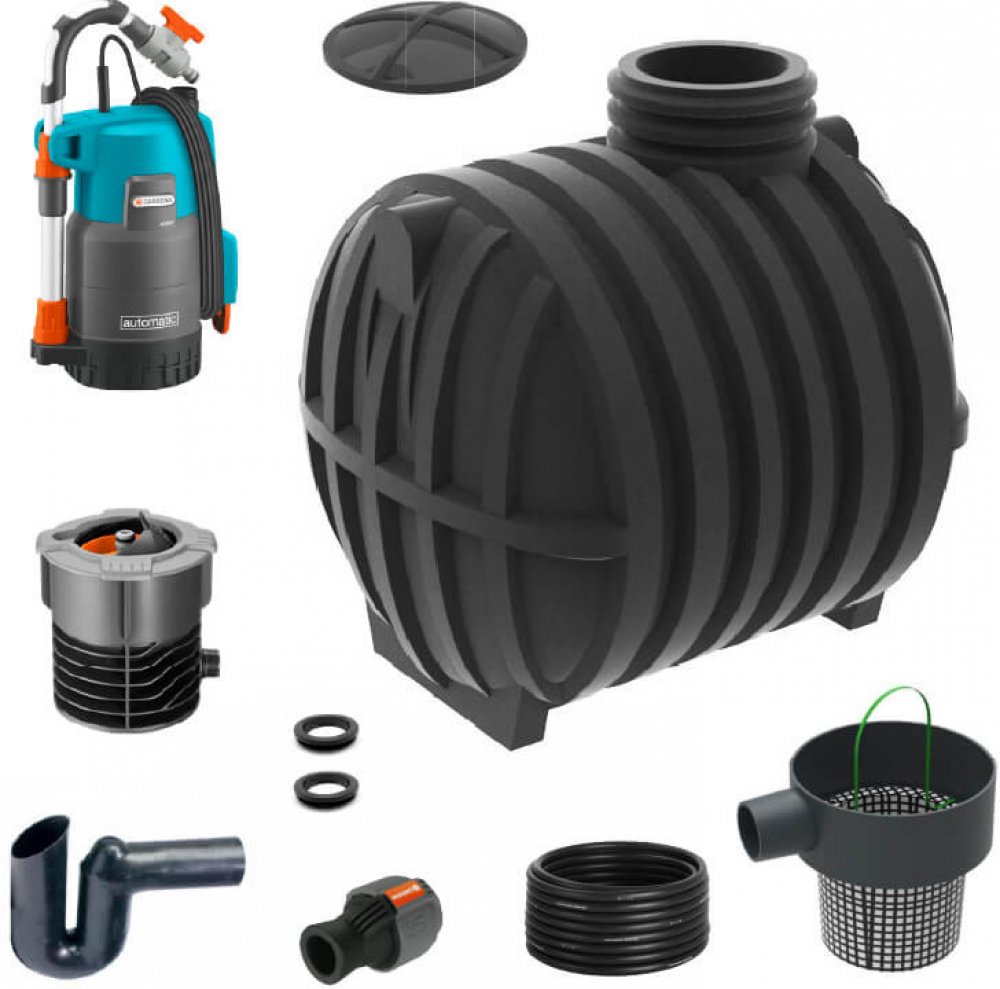 Kompletní sestava pro hospodaření s dešťovou vodou na zahradě.