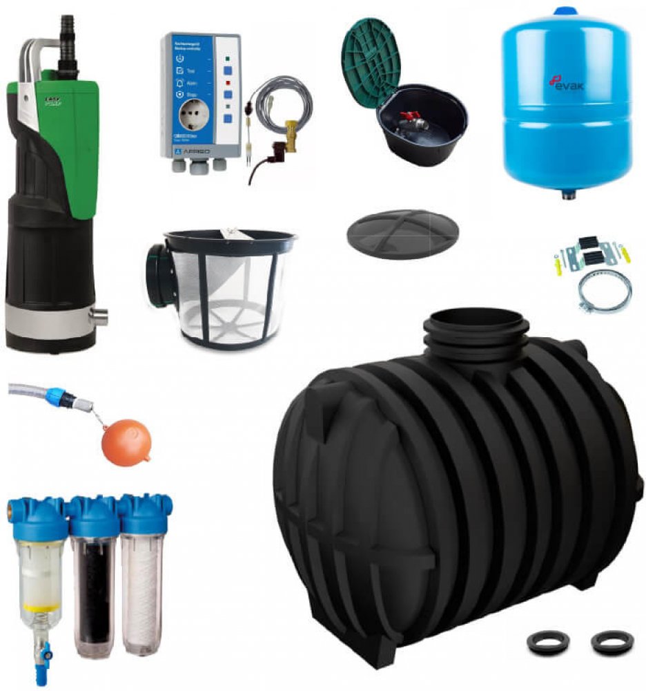 Kompletní sestava pro hospodaření s dešťovou vodou v domácnosti s nádrží Smart 7000 l