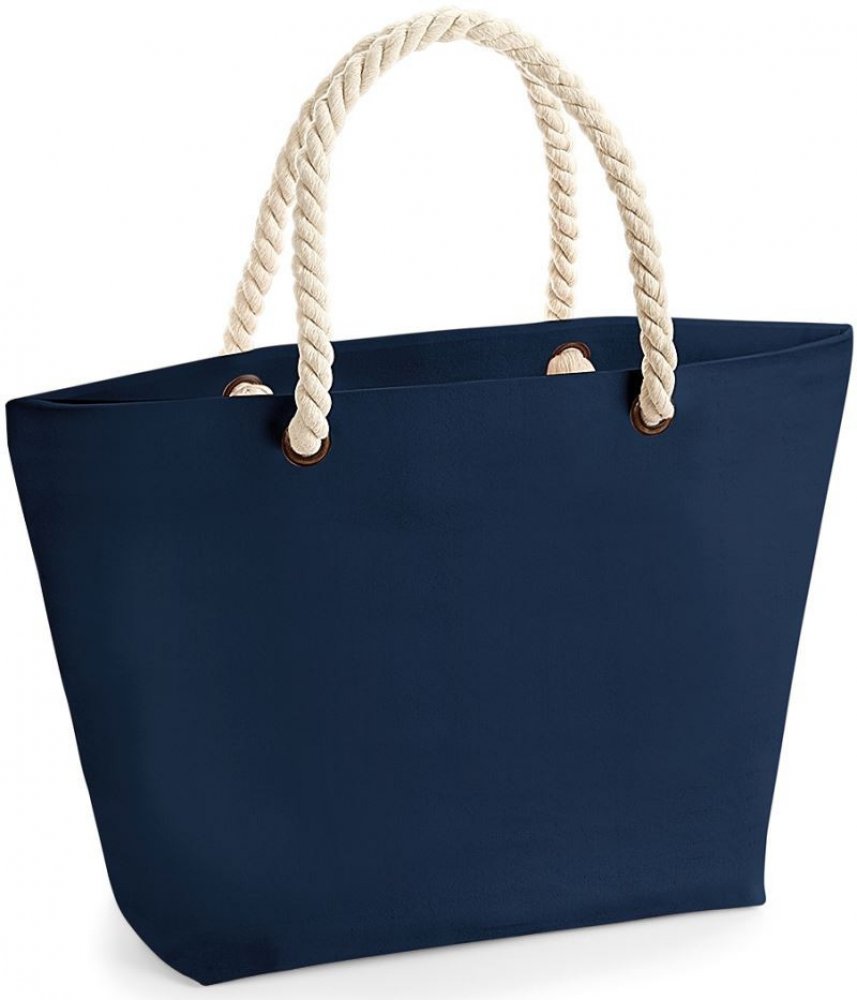 Plátěná nákupní nebo plážová přírodní taška s kroucenými držadly tmavě modrá