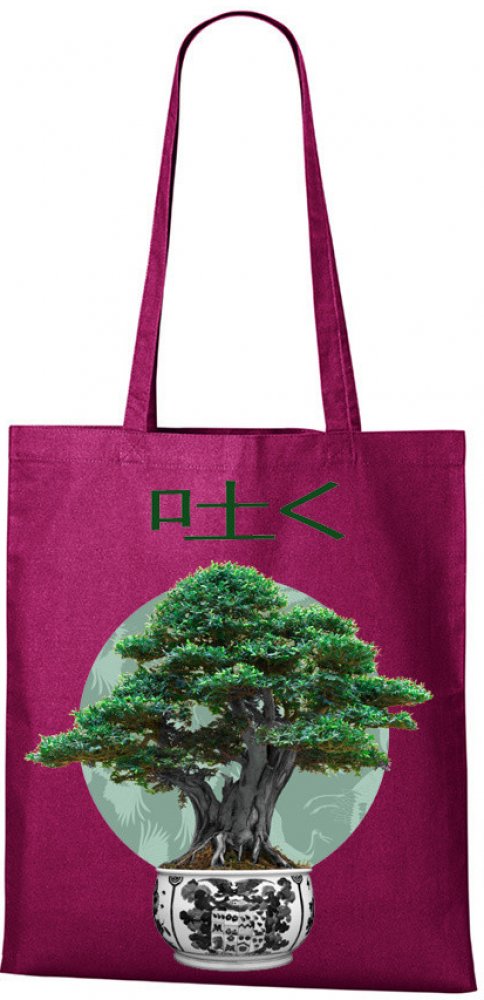 Bonsaje tedy stromy, které jsou zasazeny v keramických miskách, fascinují člověka již celé věky. Považují se za symbol síly a zdraví. Ale co byste řekli na plátěnou tašku s potiskem bonsaje? To už je řádně kousek! S touto stylovou plátěnou taškou zaujmete zaručeně vaše okolí. Plátěné tašky jsou navíc ekologické a chrání naši planetu a proto neváhejte a sáhněte po ekologické nák