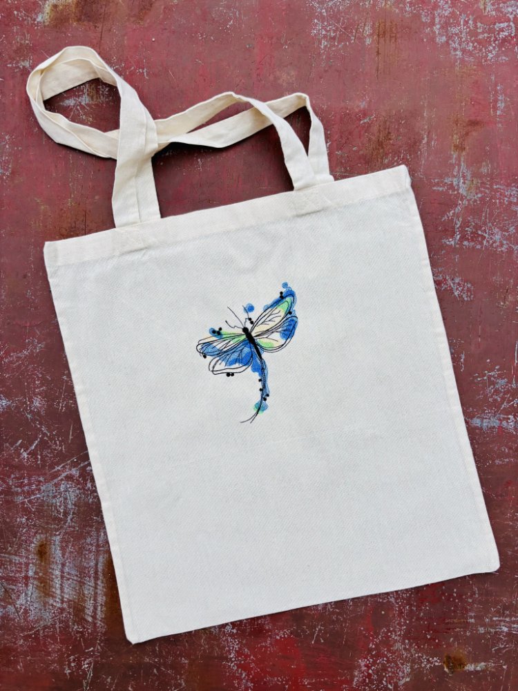 Plátěná taška s výšivkou vážky II