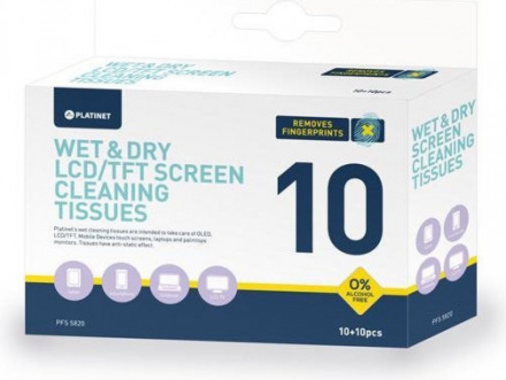 PLATINET mokré/suché ubrousky na obrazovky smartphone 10+10 ks