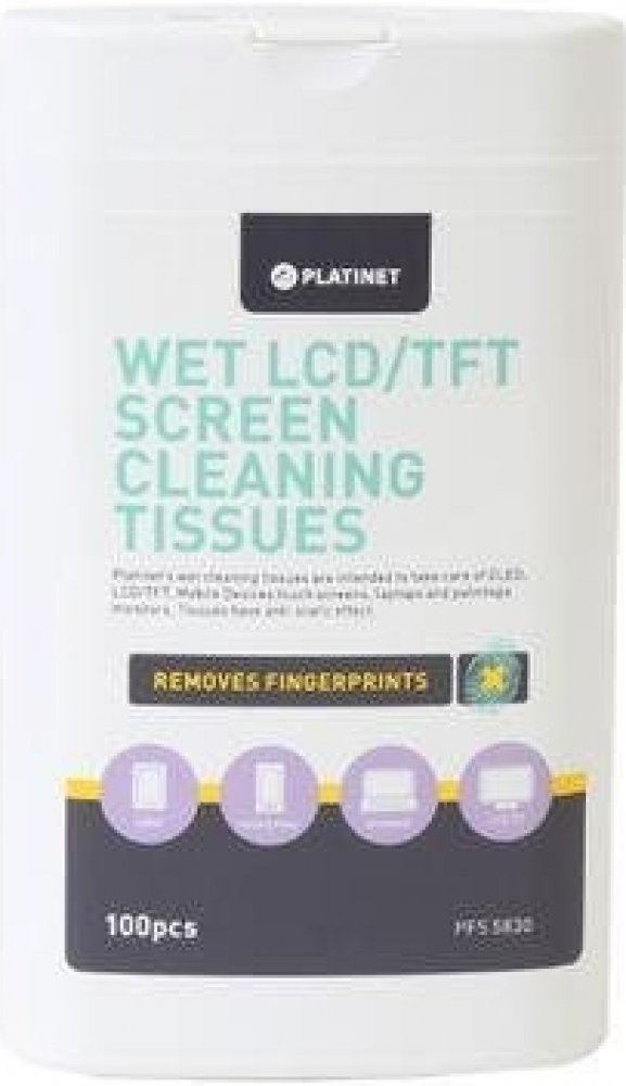 Navlhčené čistící ubrousky jsou určeny pro péči o LCD a TFT monitory, notebooky, tablety. Rozměr: 11x9,4cm. Působí antistaticky. Kapalina neobsahuje alkohol (nehořlavý). Zbůsob použití: Víčkem protáhnout z role prostřední kapesníček. Vlhký monitor leštit jiným sychým, měkkým ubrouskem.Trvanlivost: neotevřené vydrží ve stejné kvalitě asi 30 měsíců Obsah: 100ks ubrousků.